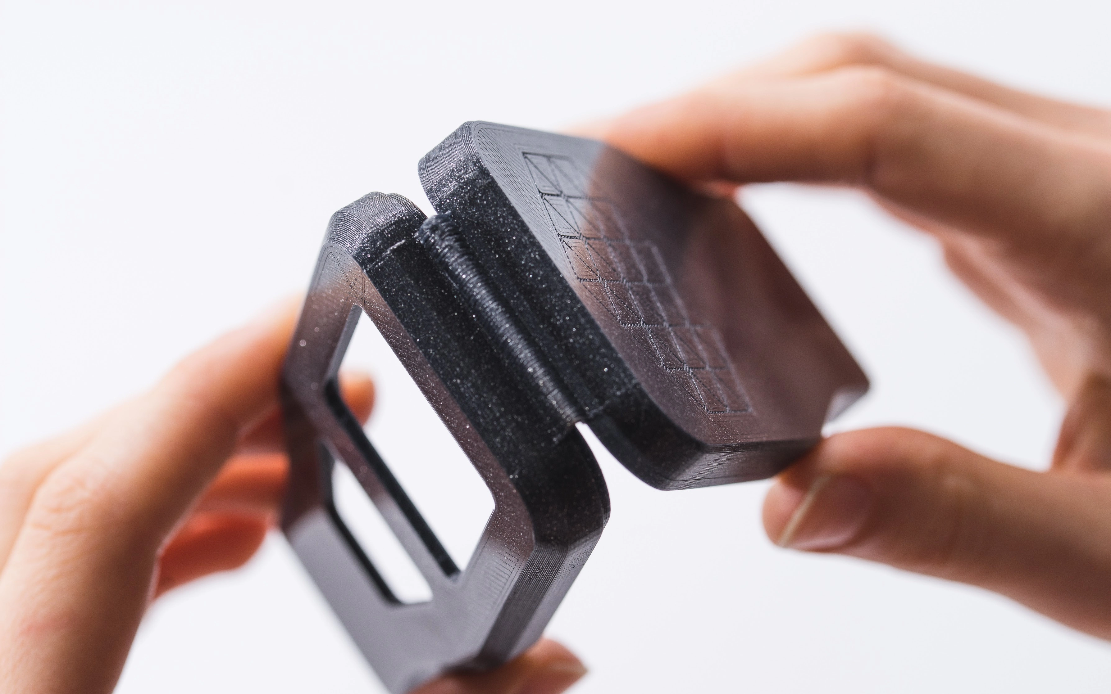 Close-up view of completed living hinge.