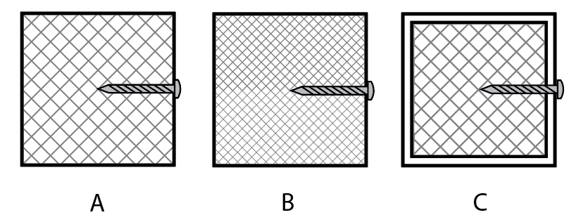Compare these three illustrations. A represents poor anchoring for a screw. B shows that increased infill allows for better anchoring. C shows that increasing the outer shell is a cheaper solution and offers improved anchoring.