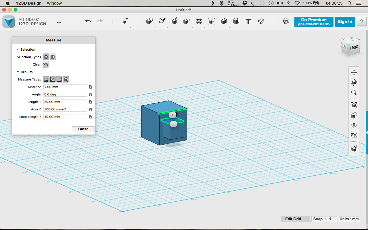 I seem to have see the current distance (5mm) and work out manually how far I need to move the smaller cube (2mm), move it that distance, and then check the measurement again to make sure OK.
