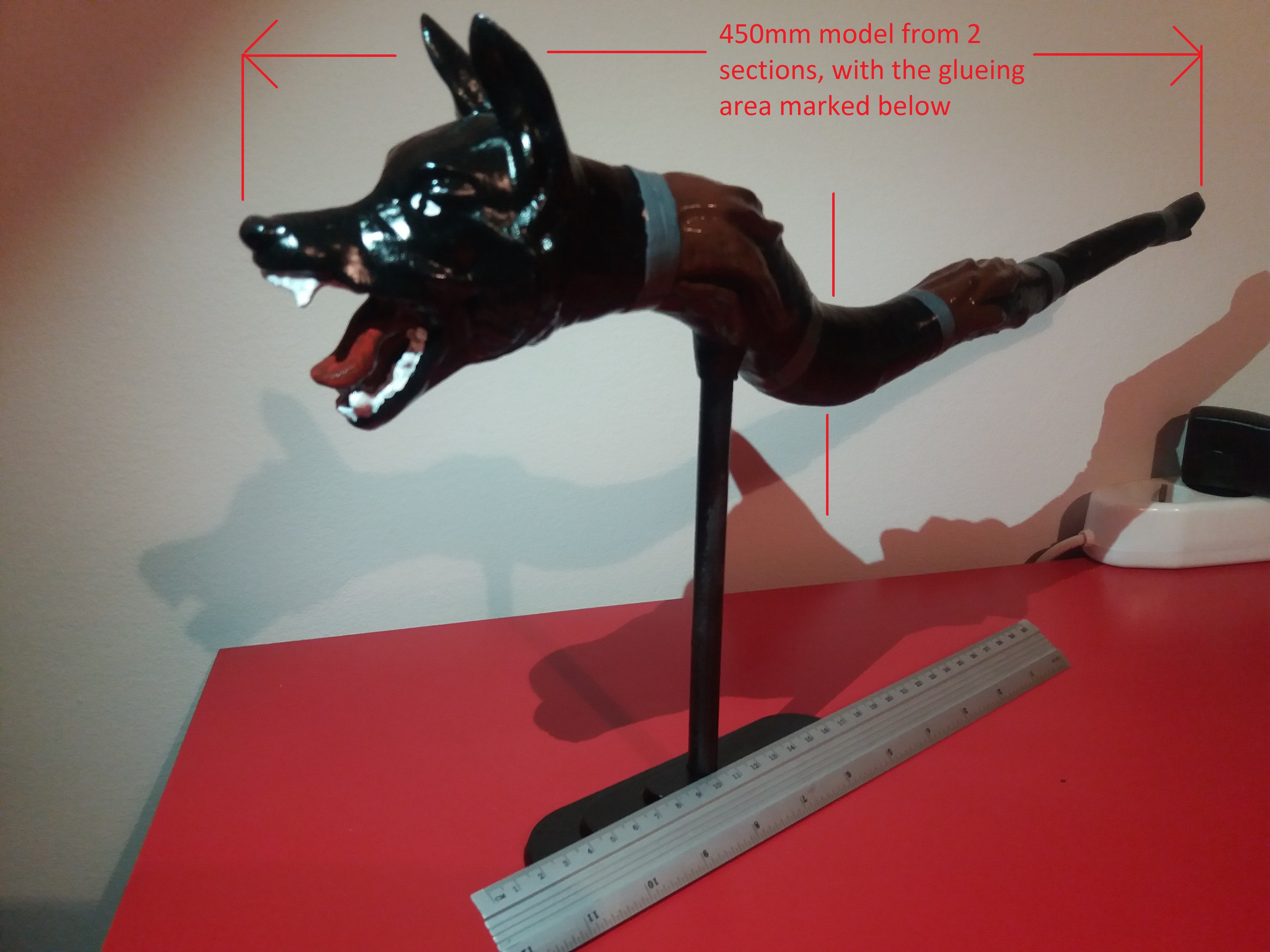 Please see the first picture of one of my finished products (450mm long, see the 300mm ruler in the picture for dimensional reference). The part on top is done from 2 components glued togher. The assembly line is hidden (I present it in the second picture) and the part is finished and painted.