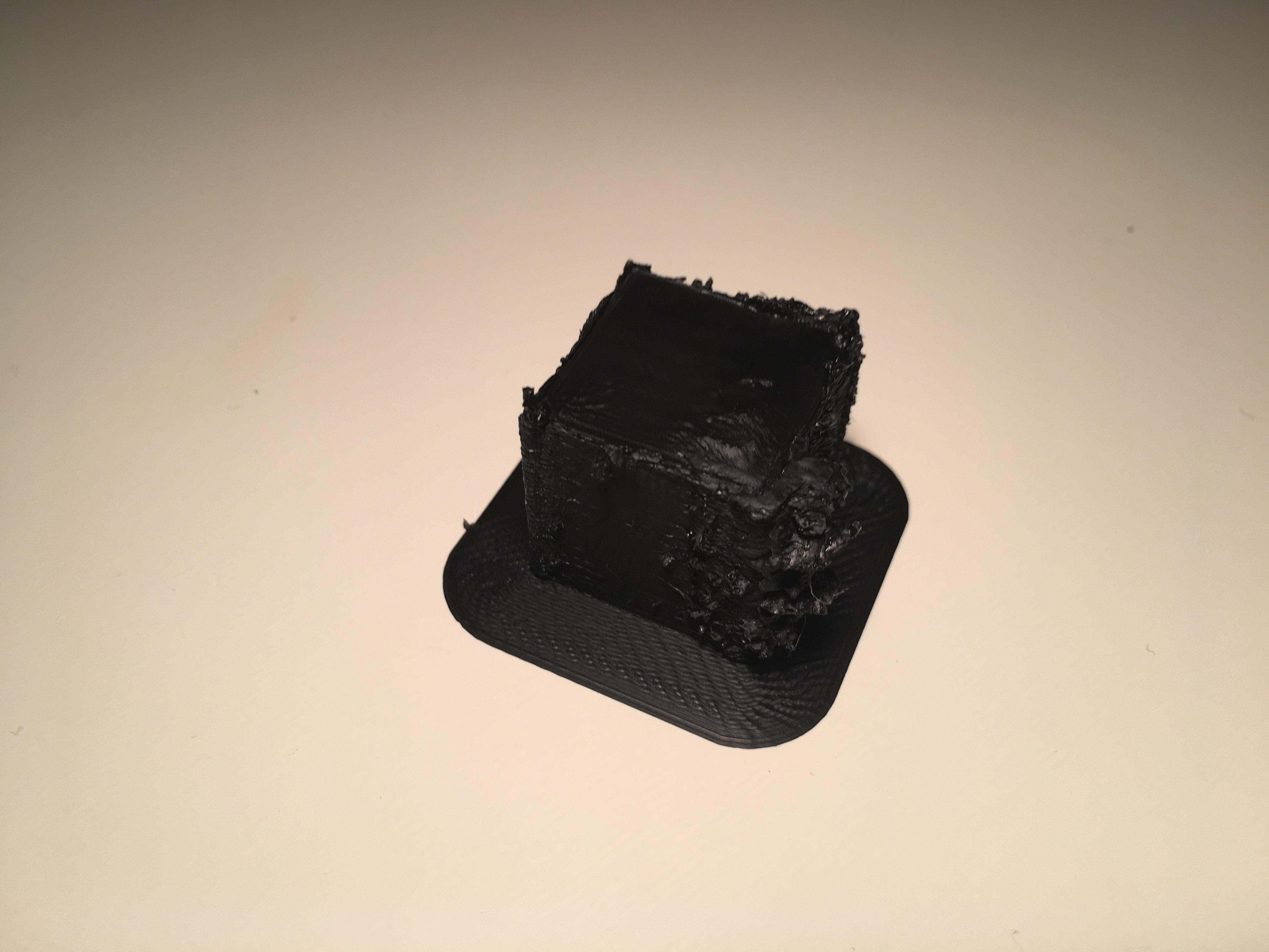 Lately I wanted to print something, as always with my ABS at 240 Celsius degrees. I moved my printer into a smaller corner but I dont know if that changed anything. I am wondering if this is a problem showed below caused by temperature or maybe something else? I would greatly appreciate help in this topic. I also included some photos of 2x2x2cm cubes for tests and I also got something not really good. (Also, I am getting those a little quarter-circles around each edge, I guess its another problem so I would also like to get to know how to get rid of them as well).