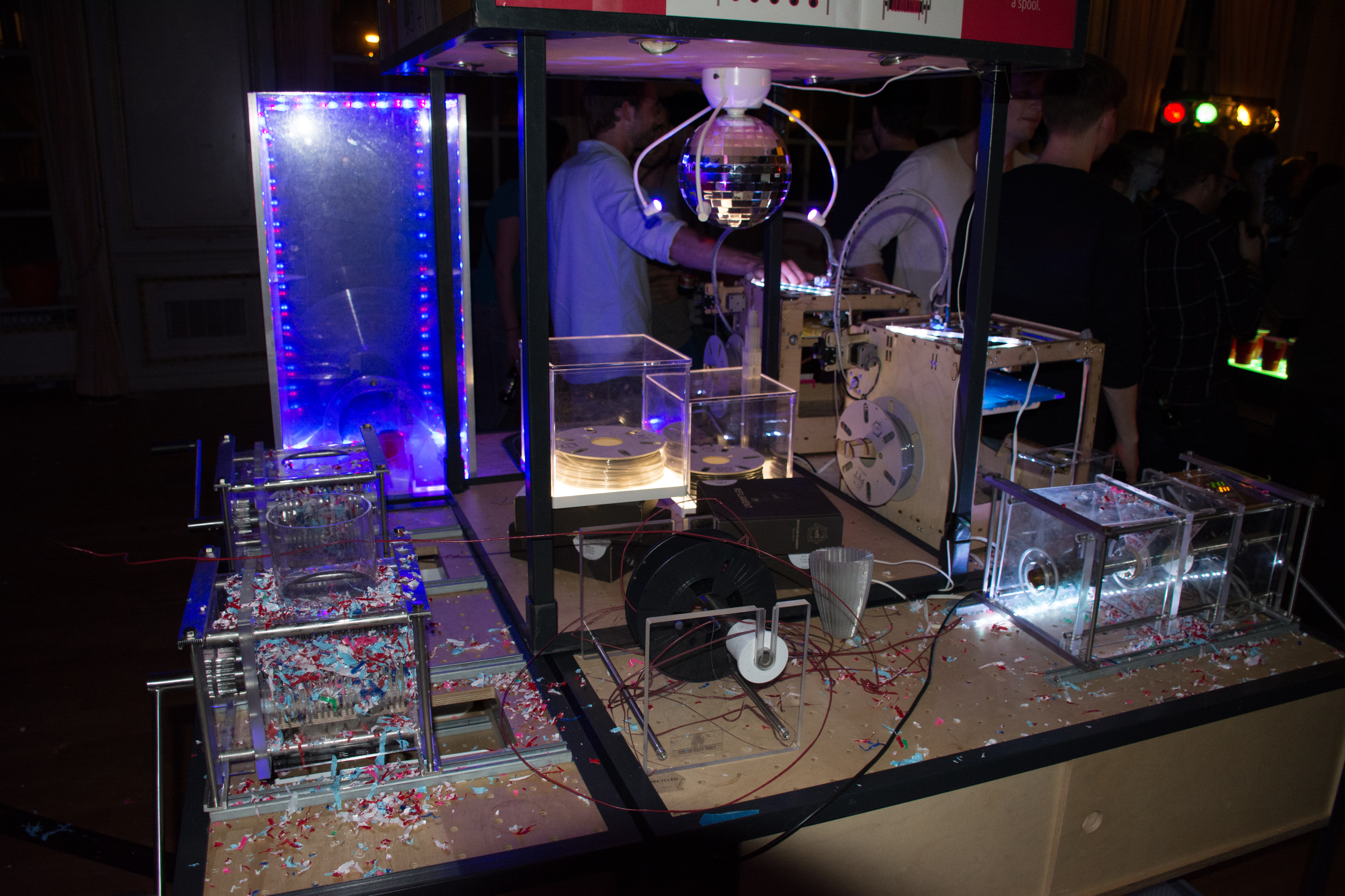 The talented peeps from Better Future Factory came with a dope recycling installation, which allowed everyone to turn their empty beer glasses into 3D printed rings. Win! There was even a disco ball attached to it!