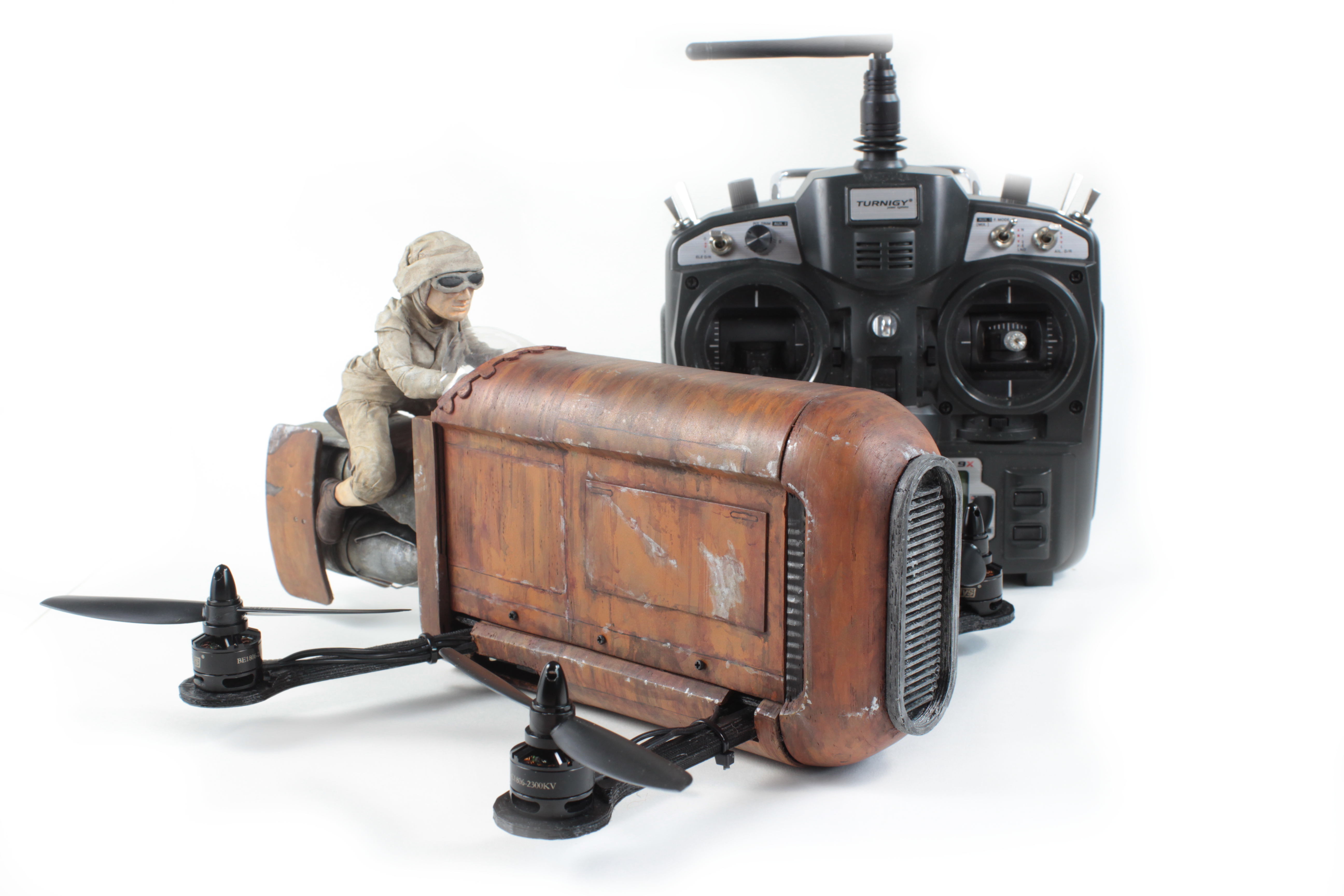 It is remote controlled flying Rey’s Speeder Bike as seen in first The Force Awakens trailer. The files are free to download. I prepared them in Google Sketch-Up and the parts will fit on most of the printers without the need for support material. For finished model like on picture attached, it requires some sanding and paint job, but its easy, you can go crazy with weathering and dirt on this one
