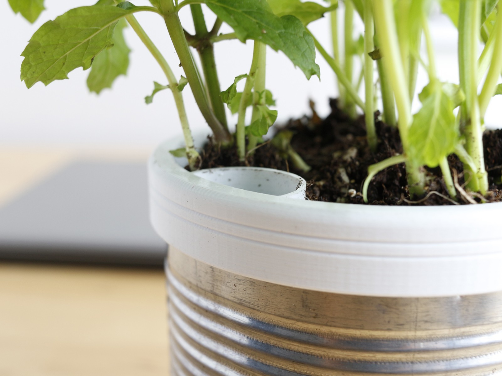 Living or working in a small place usually means the area is not plant-friendly. They require some water, attention and they can get your workspace dirty. Focused on this problems, this 3D printed adapter is a material saving way to give a new life to any type of can and make use of their functionality and neat design.