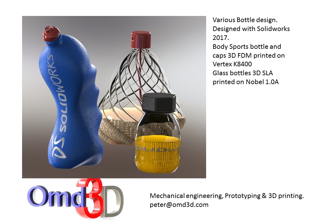 I need a few CAD drawings and 3D bottles printed. I have a benchmark bottle which is 25.4 oz, and I’d like to see a few different 1 Liter variations of that bottle: