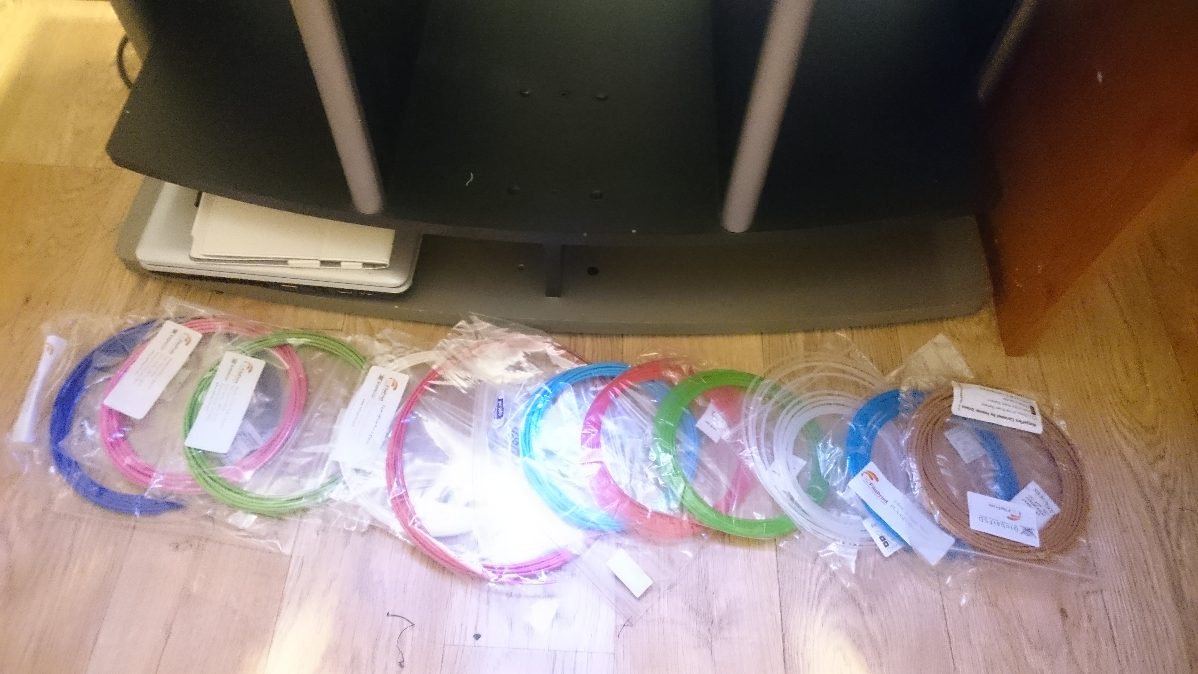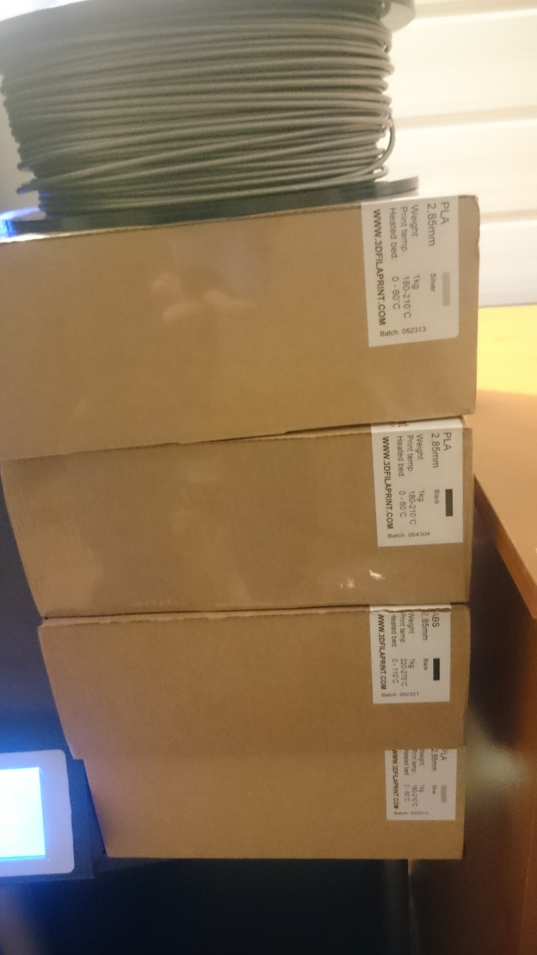 Also comes with stack of Filaments as you can see from the pictures, PLA and ABS. Other accessories include: Small clamps, Blue tapes and a bottle of acetone.