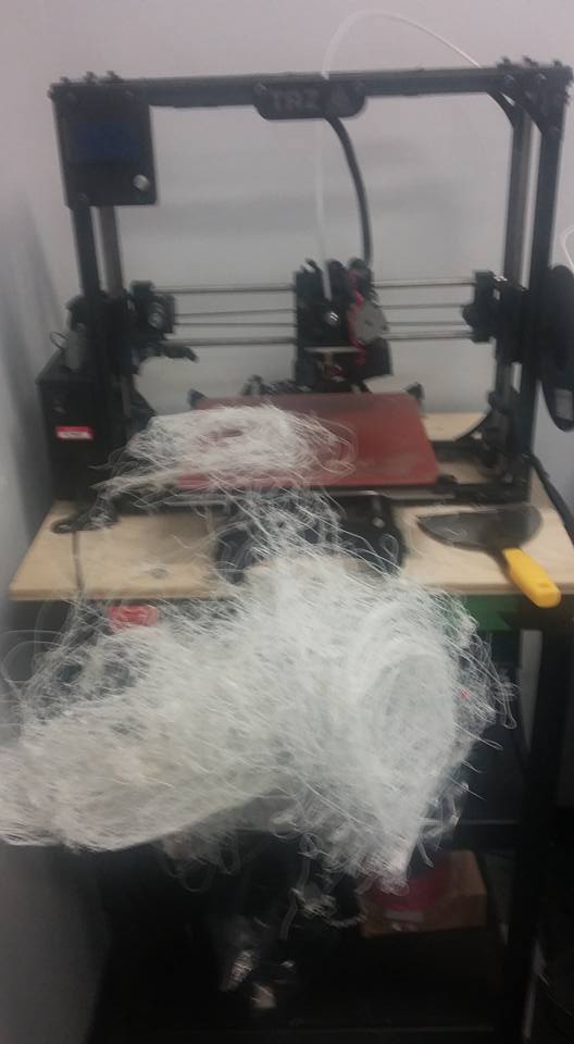 But to be fair we’ve never had an issue with large prints with any of them, we have had a couple of issues with some filament suppliers material not working correctly at the stated tempratures and we get the first few layers not laminating (similar spagetti to what you have in your photo) - but these were all solved by either avoid cheep filament or tweaking bed/nozzle temps and/or adding glue stick to the bed to get good adhesion.