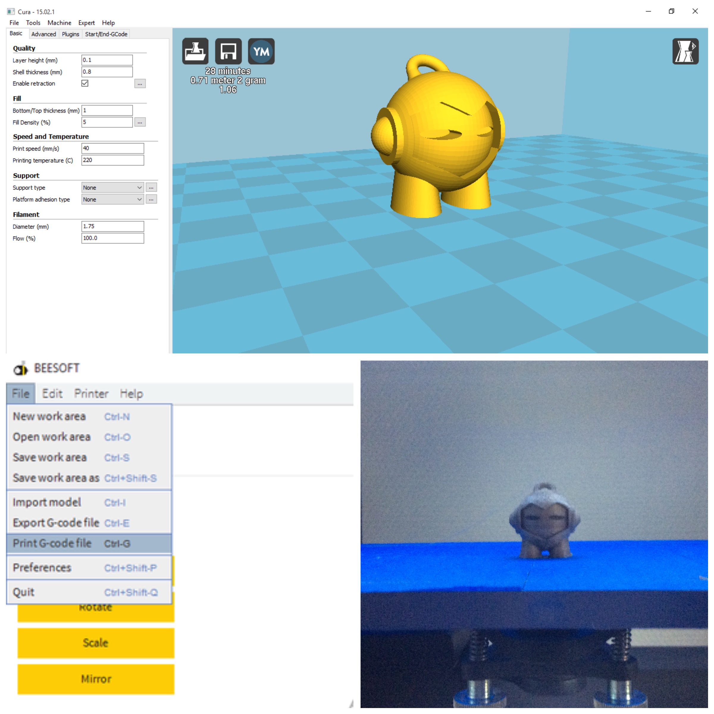 “Print with generated Gcode from Cura and Simplify3D”