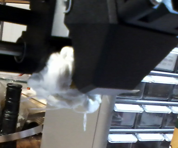 In the end I decided to skip the heat gun idea; I first tried the blow dryer at maximum power, but it didn’t do much. It DID show that the air when everywhere and I couldn’t control it. Next I tried my hot knife for cutting styrofoam. It was marginally successful, so I moved to a soldering iron at 16 watts. That was better but still not enough. In the end I went with a 25 volt soldering iron and that was much more effective. As the filament bubbled and smoked (lots of smoke, used an air filter next to the printer to keep in all in check), the plastic changed where the tip went but didn’t melt. After it cooled I could pull a good portion off by hand. After an hour’s worth of work I had half of it gone. I plan on removing the second half later today and giving it another test print. Thanks for the advice about the aluminum foil–that’s a great idea for future projects where I need to use something hot in a confined area.