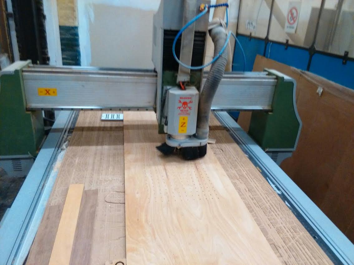 The next step is to mill holes with the CNC machine for the LED’s (there’s going to be exactly 300 of those). It took us about 2 hours and we did this at iFabrica here in Amsterdam.