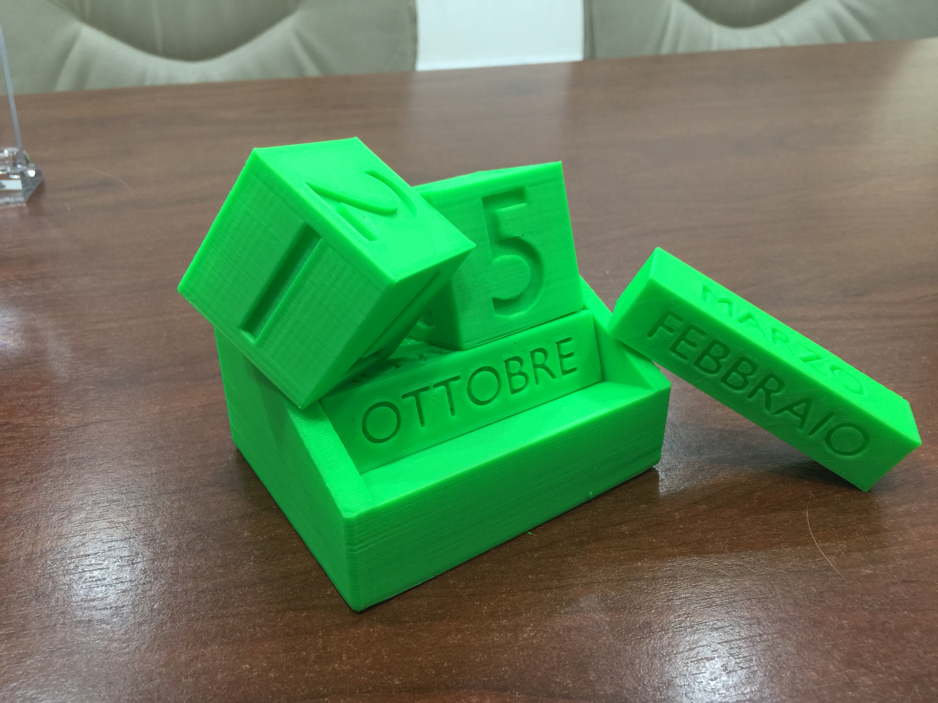 Hi Folks, here is a classic calendar for Your desk at home or at office. I’ve found an “ancient” one owned by my grandfather (God bless him!) and I designed it using Blender. Search valpap on Thingiverse to download or go to www.Made3d.it to buy choosing color and language