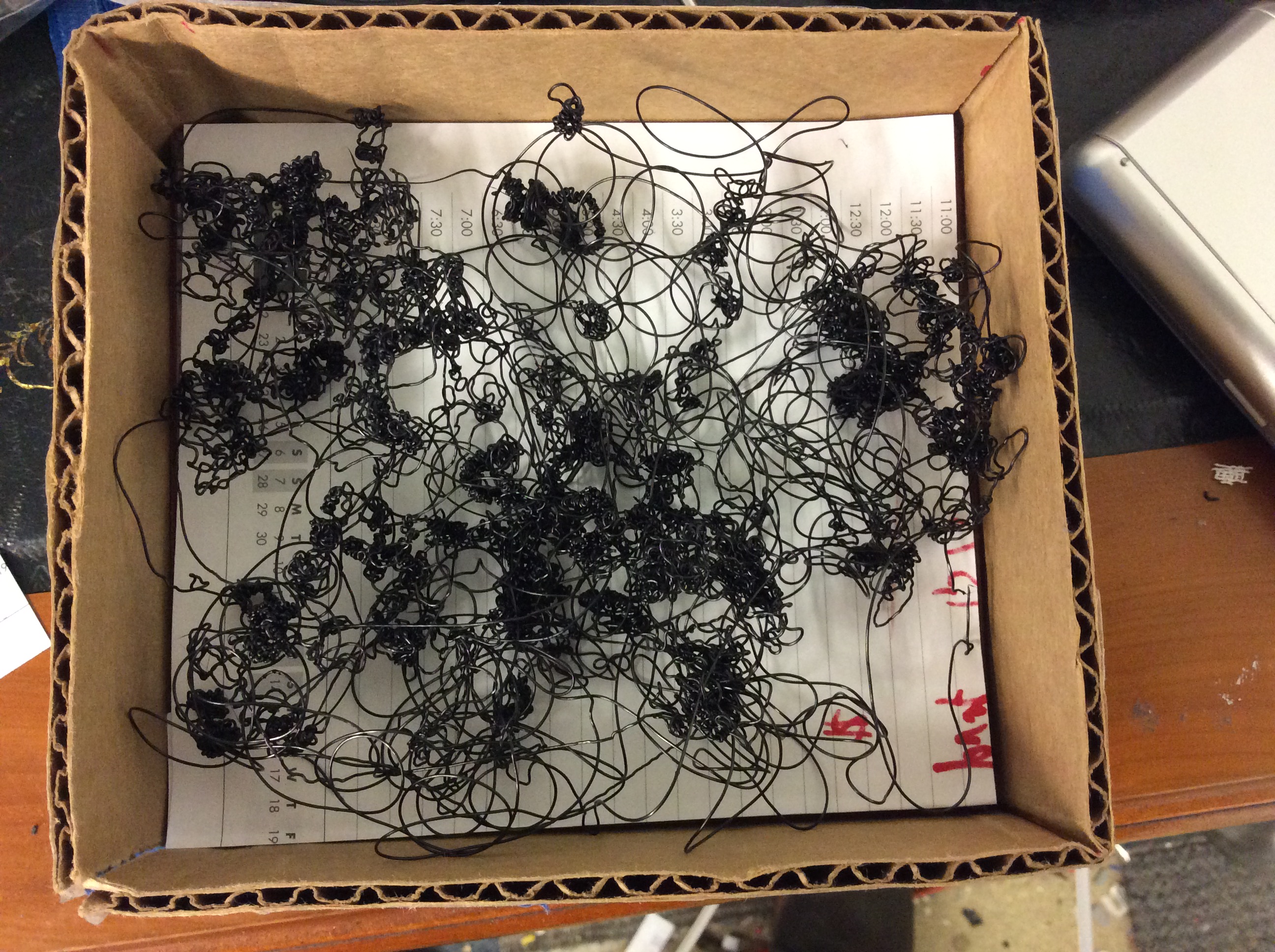 OK! What do I need? Our beautiful design needs to rest in its box on a bed of black extruded filament - AFTER the extruder, so 0.3mm or so in diameter. I’m reckoning on about 5-10cm3, or about 2-5 Metres per box and there’ll be 100 boxes. Just bung it in an envelope to me and you’re golden!