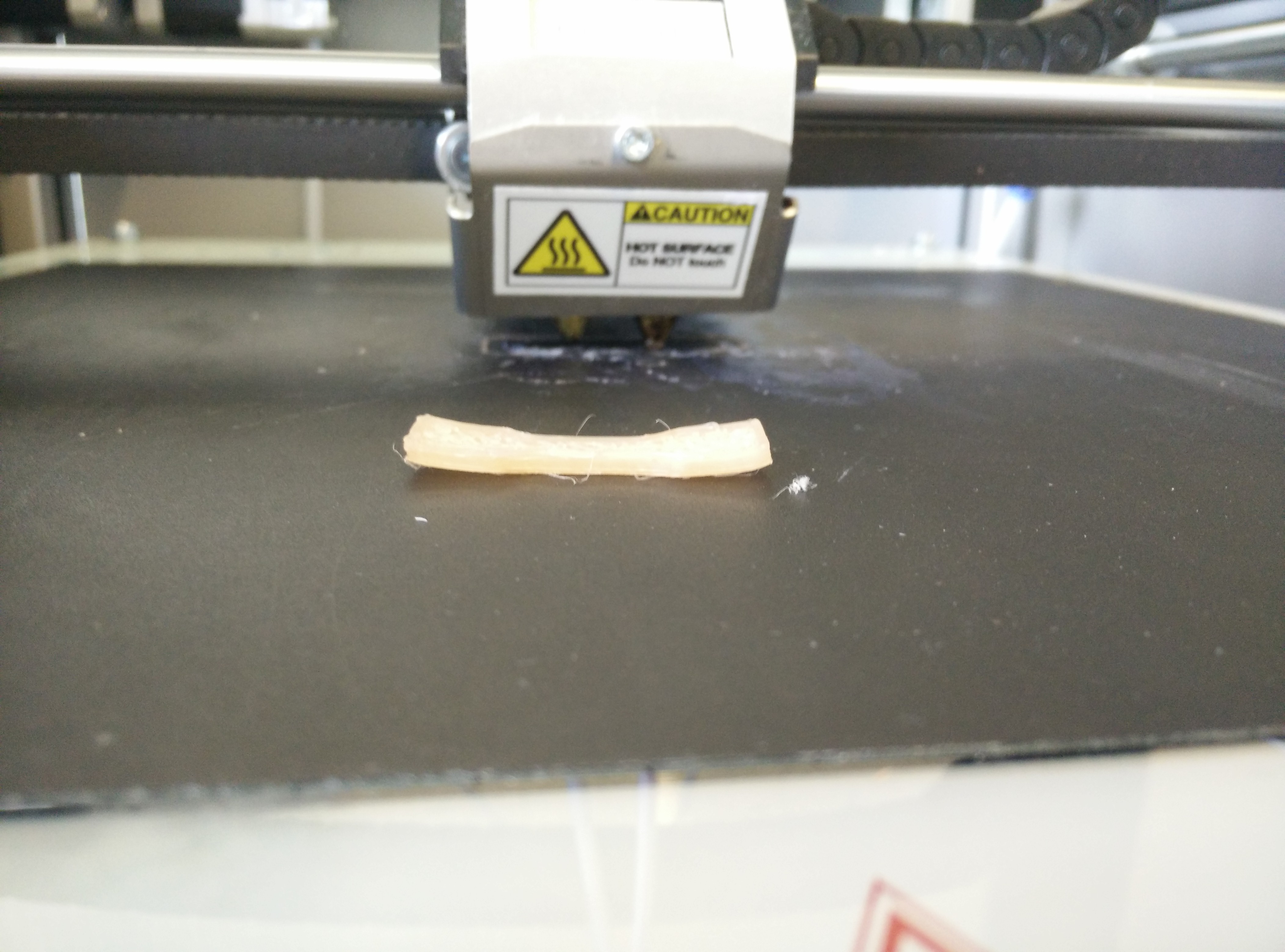 The guys from the Perpetual Plastic Project have however been able to print PP. So this, together with the fact that PP printing products can in fact be bought, suggests that with a little more practice, PP can be used as a material for 3D printing. This is supported by my observations when printing PP. The extruding went very smooth and the layers sticked to each other nicely. The only issue remains the warping and the sticking to the bed, which of course go hand in hand.
