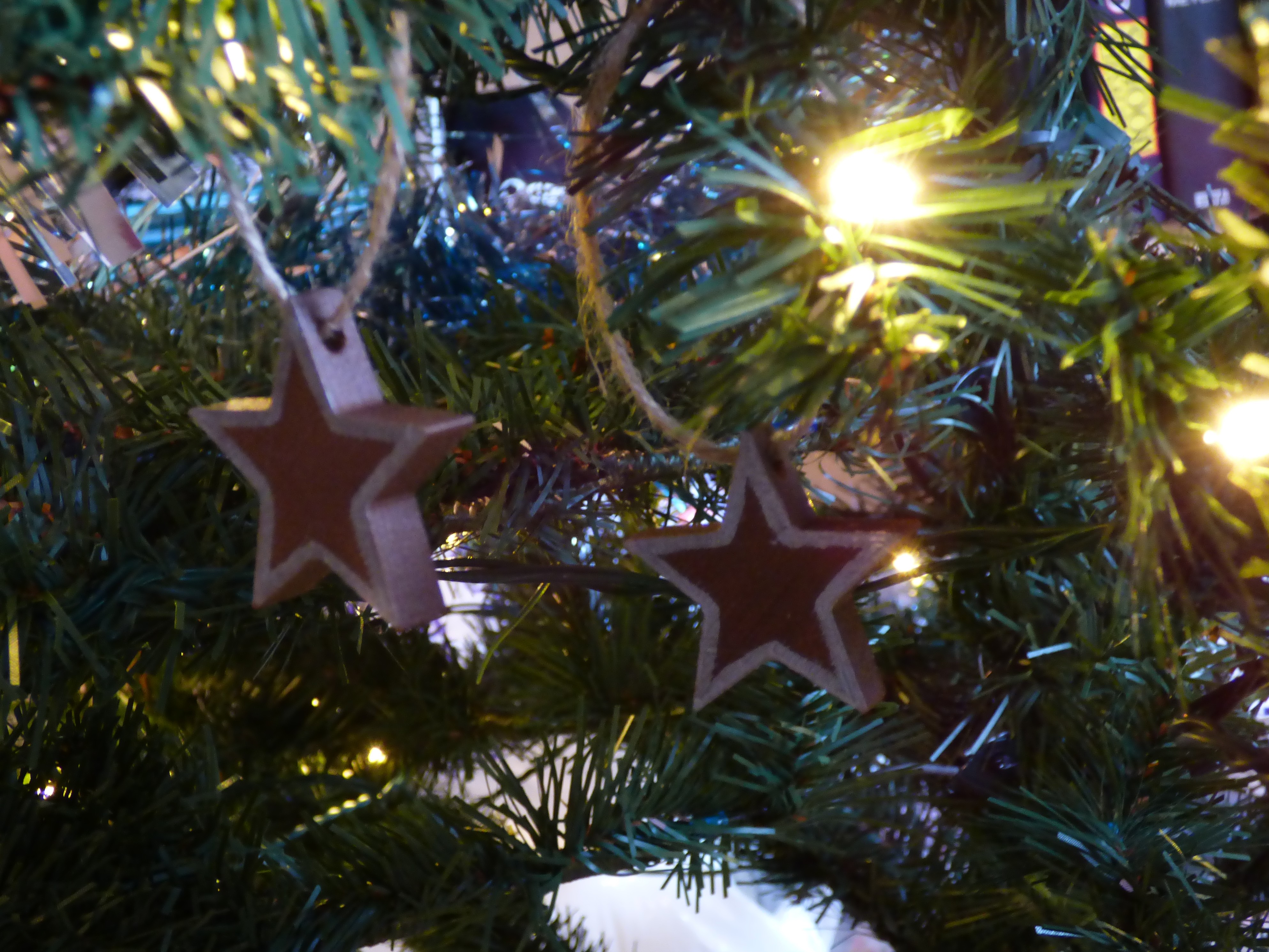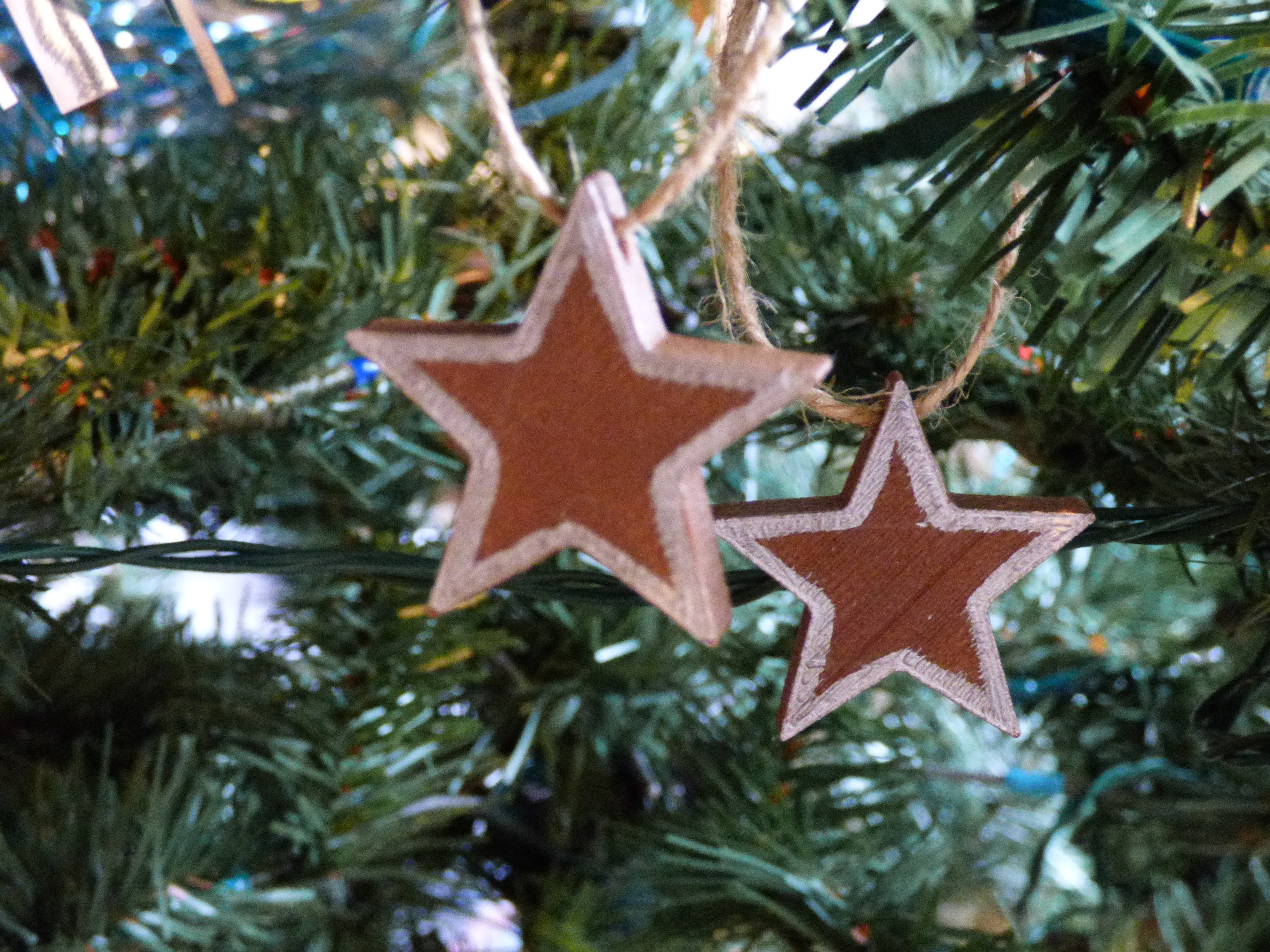 I decorated the stars with a cheap silver metallic marker pen and added some brown jute string to hang them from the tree, and they were just the look I was going for.