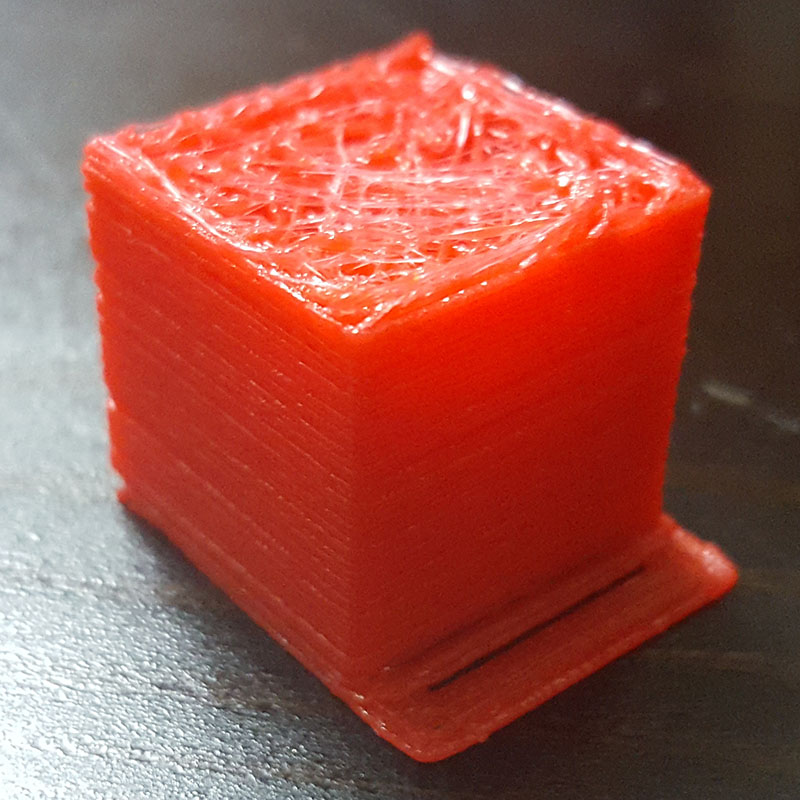 There’s a 2 cm by 1 test cube - seems to keep missing bits. I’ve checked my calibration and seems fine for x y z… not sure how to do it for the extractor.