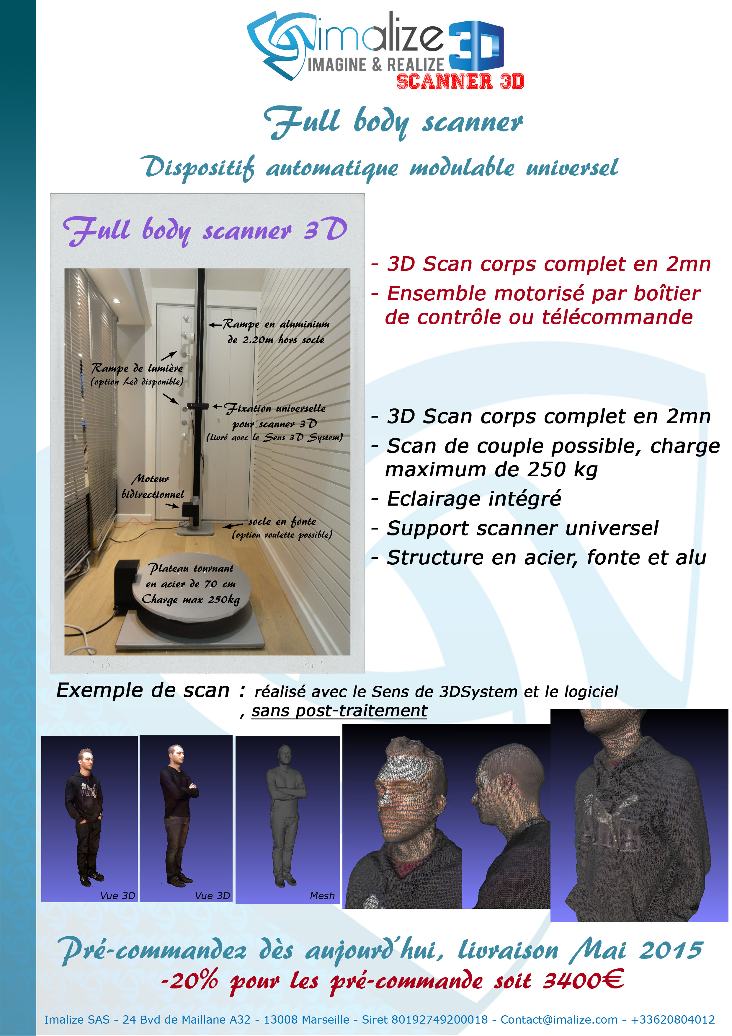 We use a 3D Scan Sens Cubify with Recfusion (possible with Reconstructme and Skanect) which is better than the 3D System’s software.