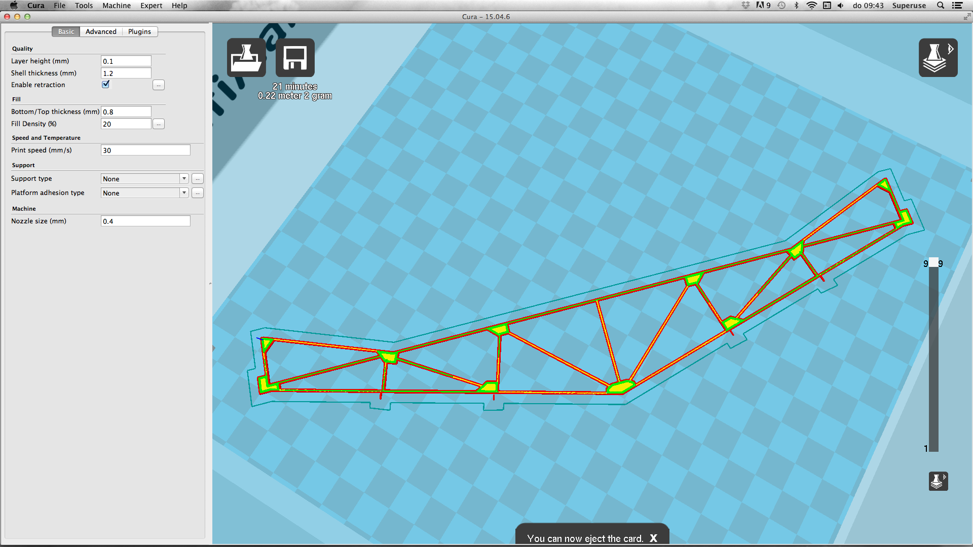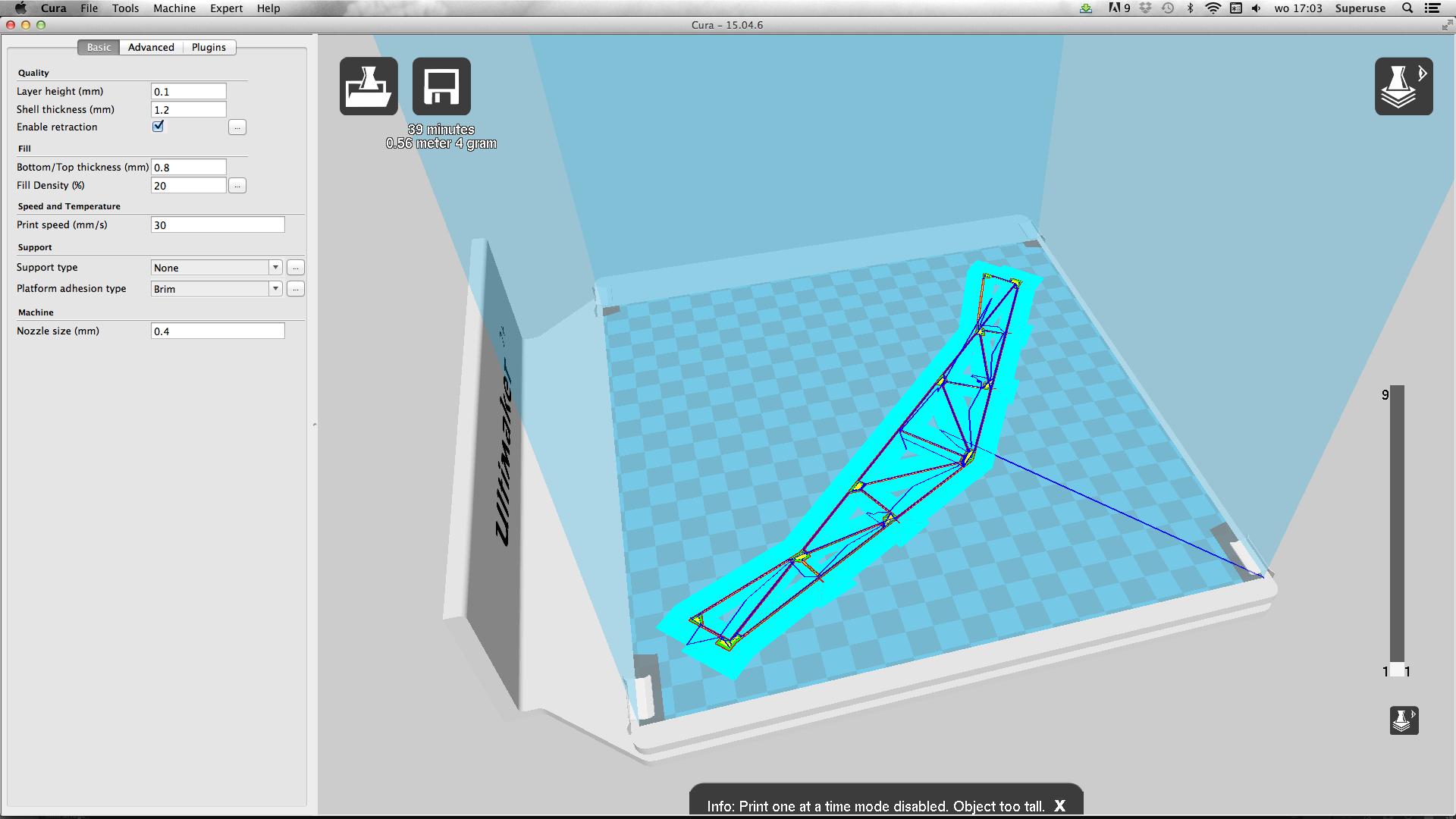 Met een MultiMaker 2+ extend willen we een obj. file van SketchUp printen dmv Cura.