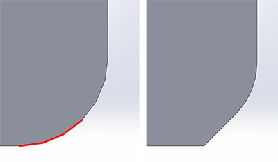 Option 2: Reduce the exterior filet elements so that you get to the correct overhang angle sooner. Maybe reduce the exterior filet elements to 5mm instead of 10mm. You will still have issues with the print for a couple layers, but it should look much better.