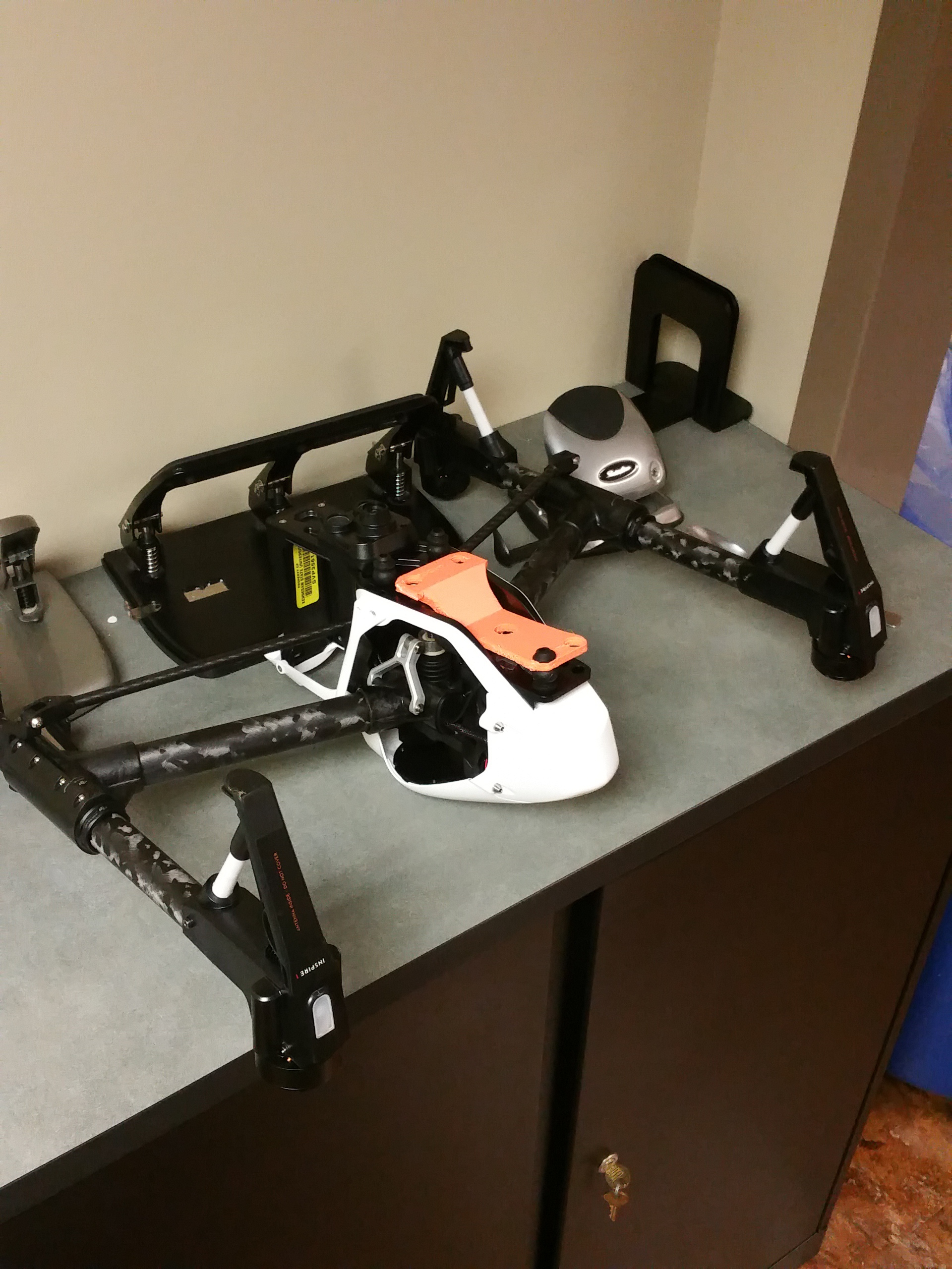 Lately I have been working on a new camera mount for Kennesaw States Construction Management’s DJI Inspire 1 drone. The camera has the ability to film and shoot in 3d. Because it is impossible to find real parts for these drones I first model the camera mount plate for the drone, this allows me to add holes for future attachments. I have attached a few views of the model.