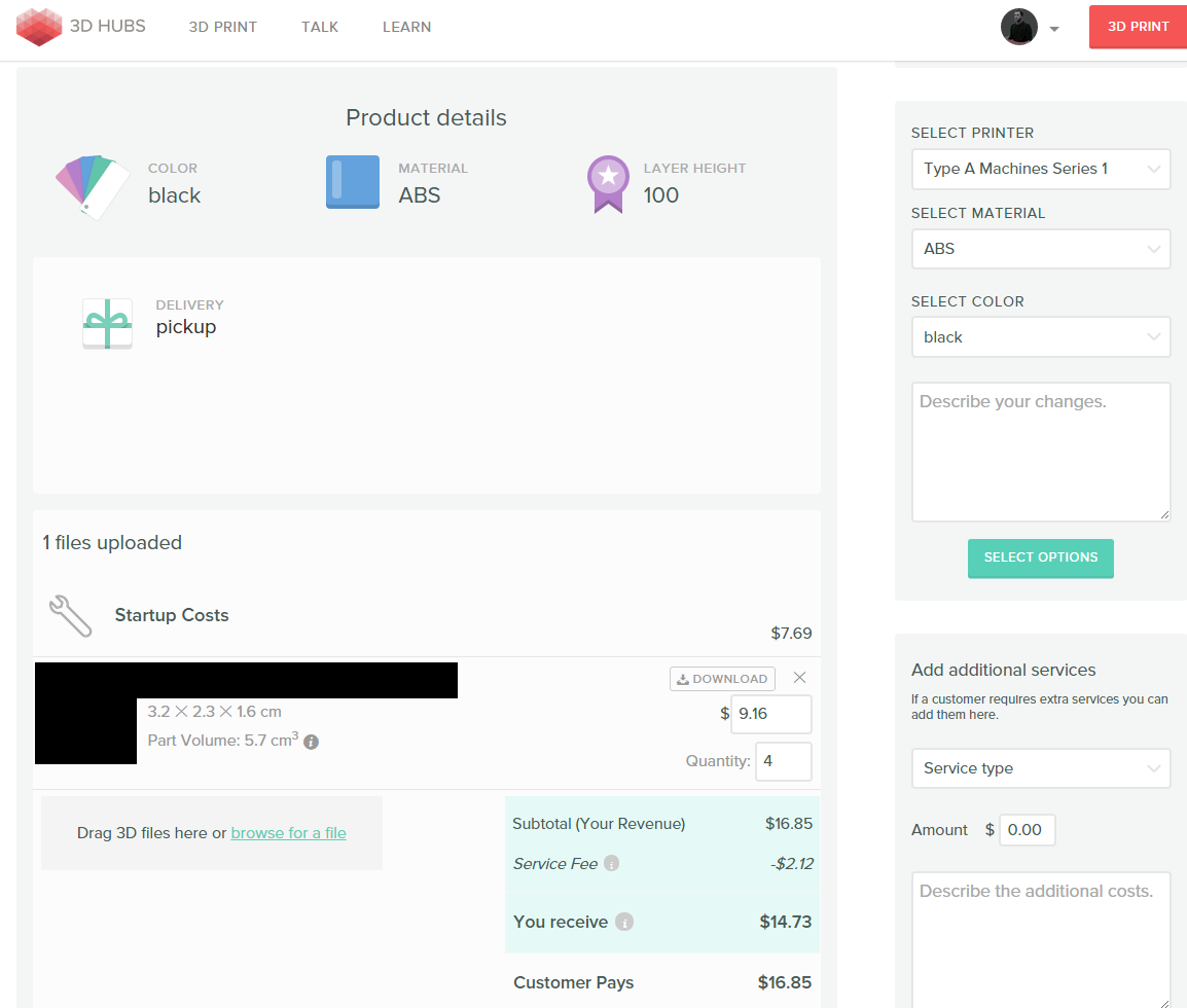 Cool, thanks. One feature I’d still like is to be able to offer “rush processing.” Right now, I just list my printers as multiples. Some with smaller lead-times but higher startup prices. Also, it is often confusing for people when I tack on fee for “parts cleanup.”