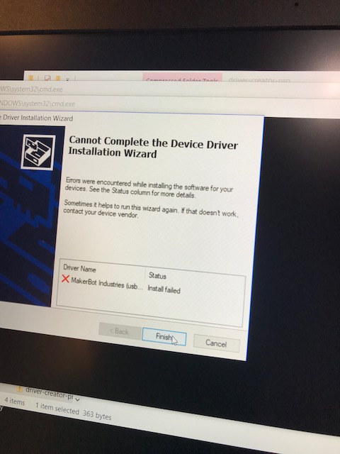 I just got my first printer, ff Creator Pro, and the drivers won’t load from the SD Card. I can get the happy 3d (not using this though- my designs are stl from tinkercad) and flash print to download, but not the creator drivers. I have a really hard time but can get the new version of flash print to load from the website but I still seem to have trouble. I can load everything up, and the test print on the SD card prints like a dream. But, when ever I try and add my own file through flash print, onto my SD card to print- all I can get is the raft, then the extrusion stops,and it dances around as though it were printing making stringy little balls of fuzz. I have tried several designs, the most current flop that I feel should be easy is a fat solid cat. Pics below of everything… why is it dieing after the raft?? Do I need the drivers? What do I do?? Thank you in advance, I’m ready to my hair out…