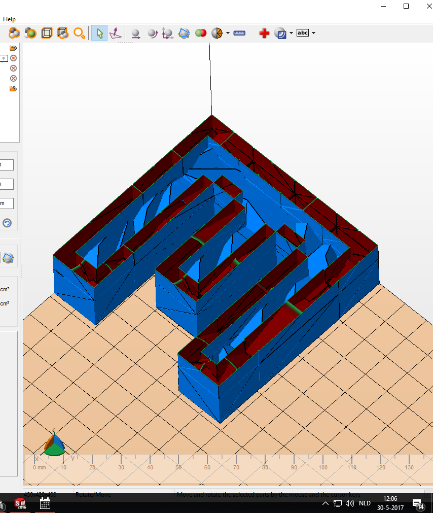 I received a file to print but the STL has some errors in it. The file is build as several squares and triangles placed close together to form a letter (‘E’). because the squares are place at an angle of 90 degrees, there is a small gap between them at the corners. when slicing, the slicer sees the squares as separate pieces and makes the inside outer perimeters, this is correct because it is in fact the outside, but it should be the outside. because there are other triangles on top, the letter should be filled with infill, but since it is sliced as outside, no infill or support is placed and holes appear in the model.