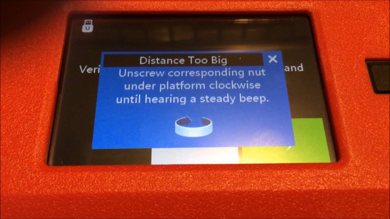 The leveling function of the Finder is a little tricky. When the printer says to “Tighten the screws anti-clockwise,” you should be turning the screws from left to right (as you’re facing the printer). This is indeed “anti-clockwise” (counter-clockwise) when taken from a perspective above the bed, and not below it. That’s why it can get confusing (believe me, I’ve been in the same situation).