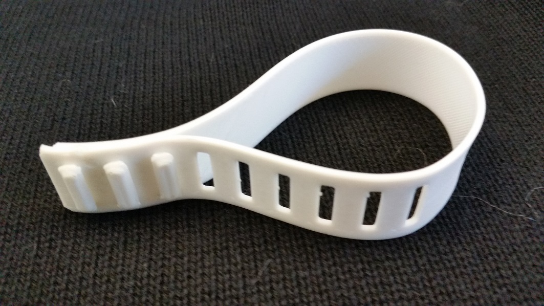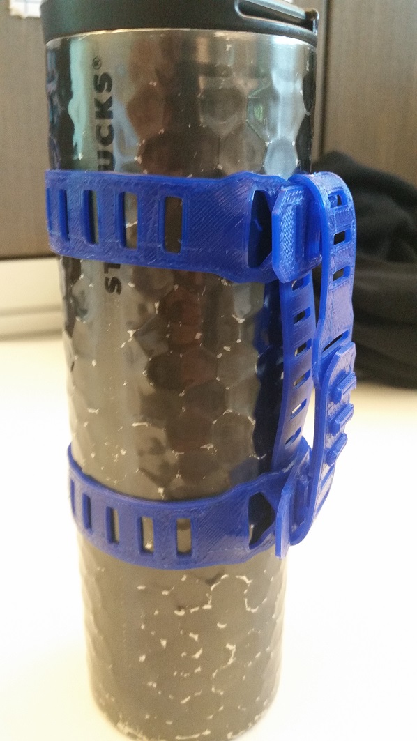 The strap has gone through a few little design iterations, and came from the need to hold a printable gauntlet I designed onto my arm, without having to go but nylon strap material and buckles. However once I printed it I quickly saw that it was a lot more useful for other things I hadn’t even thought of. So apart from working for wearables, I’ve used it add a “handle” to my coffee, have a handle for my broken Nalgene bottle, a temporary belt (using 3 or more connected together), cable management, connecting things to my belt, a make-shift sling, or you could even use it as a tourniquet in an emergency. Obviously there are a lot of uses also that I haven’t even thought of.