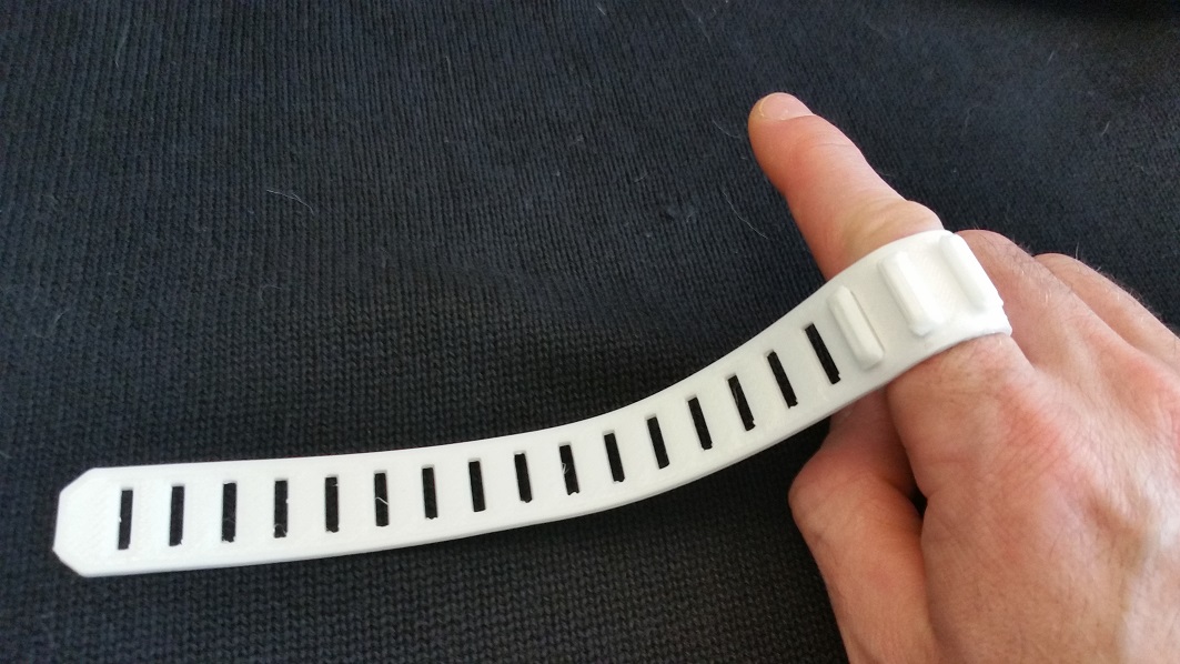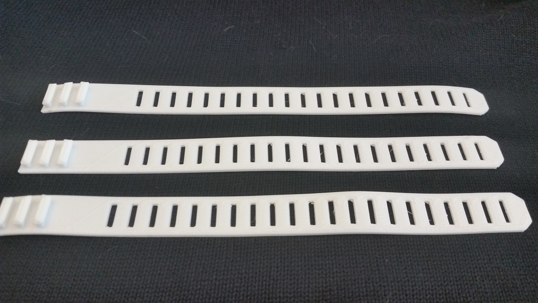 As for printing details, I use an E3D Volcano hot-end (direct drive extruder) with the 0.6mm nozzle. The strap is basically 100% infill, as I printed it at 0.3mm layer height (i.e.300 microns) with 4 solid top and bottom layers, and I set it to print with 2 vertical shells. The strength on them is pretty incredible and I have yet to break or tear any that I’ve printed. I’ll eventually put up a YouTube video with a better description and the various uses and ways of connecting them together hopefully soon.