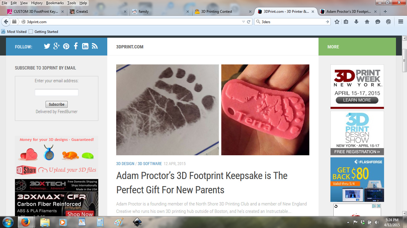 So you can try and do something following tutorial, or contact AtomJaay to help you out if you like, or you can drop by my HUB and we can talk some more. I can make you lovely keepsake wall 3D picture of baby’s foot printed and polished in bronzefill or copperfill.