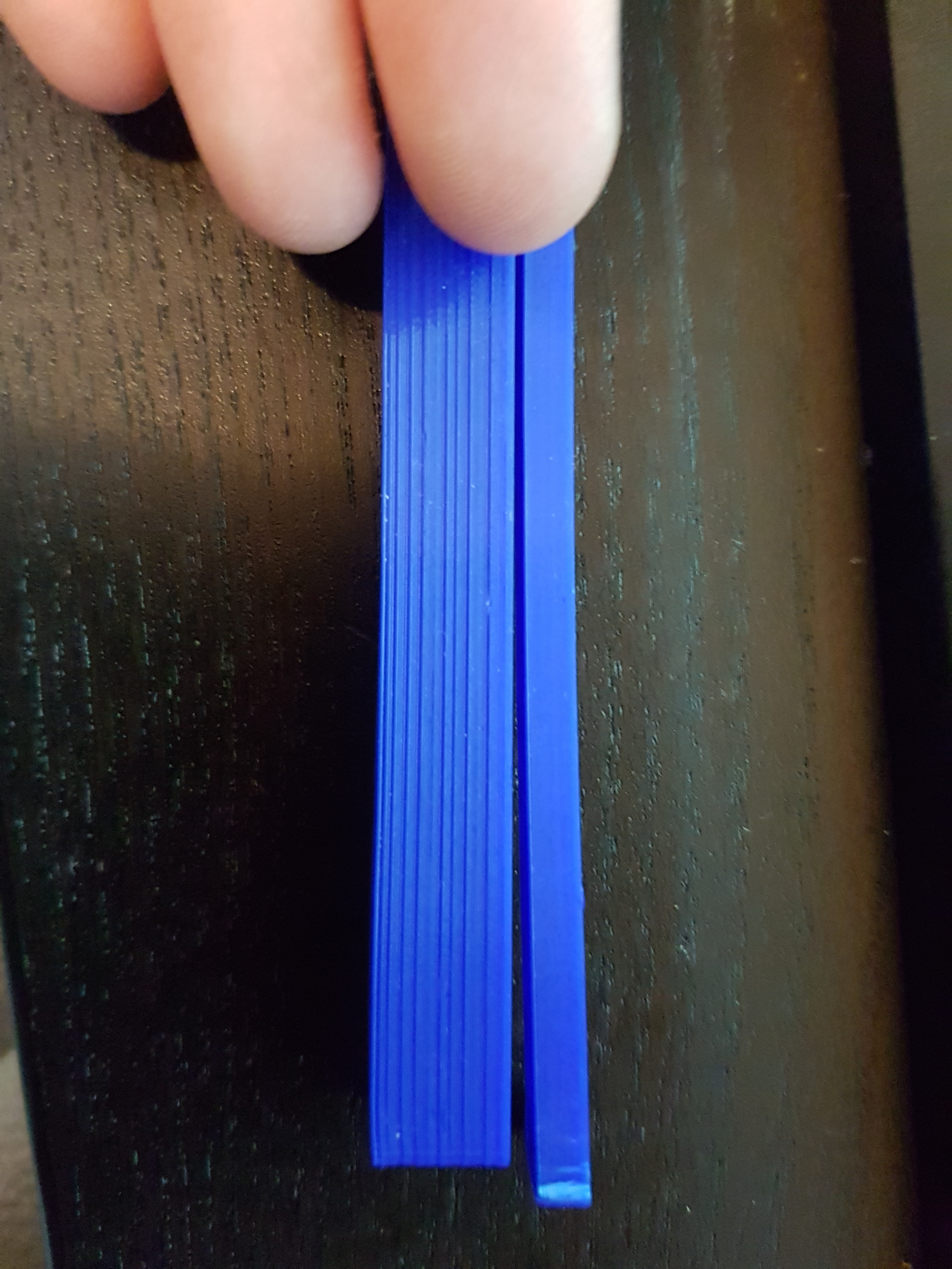 You can see in this picture the difference between printed with the heated bed and without. Unfortunately the print didn’t stick without so that’s why its so small. (sorry about the fingers, My camera wouldn’t focus without them.)