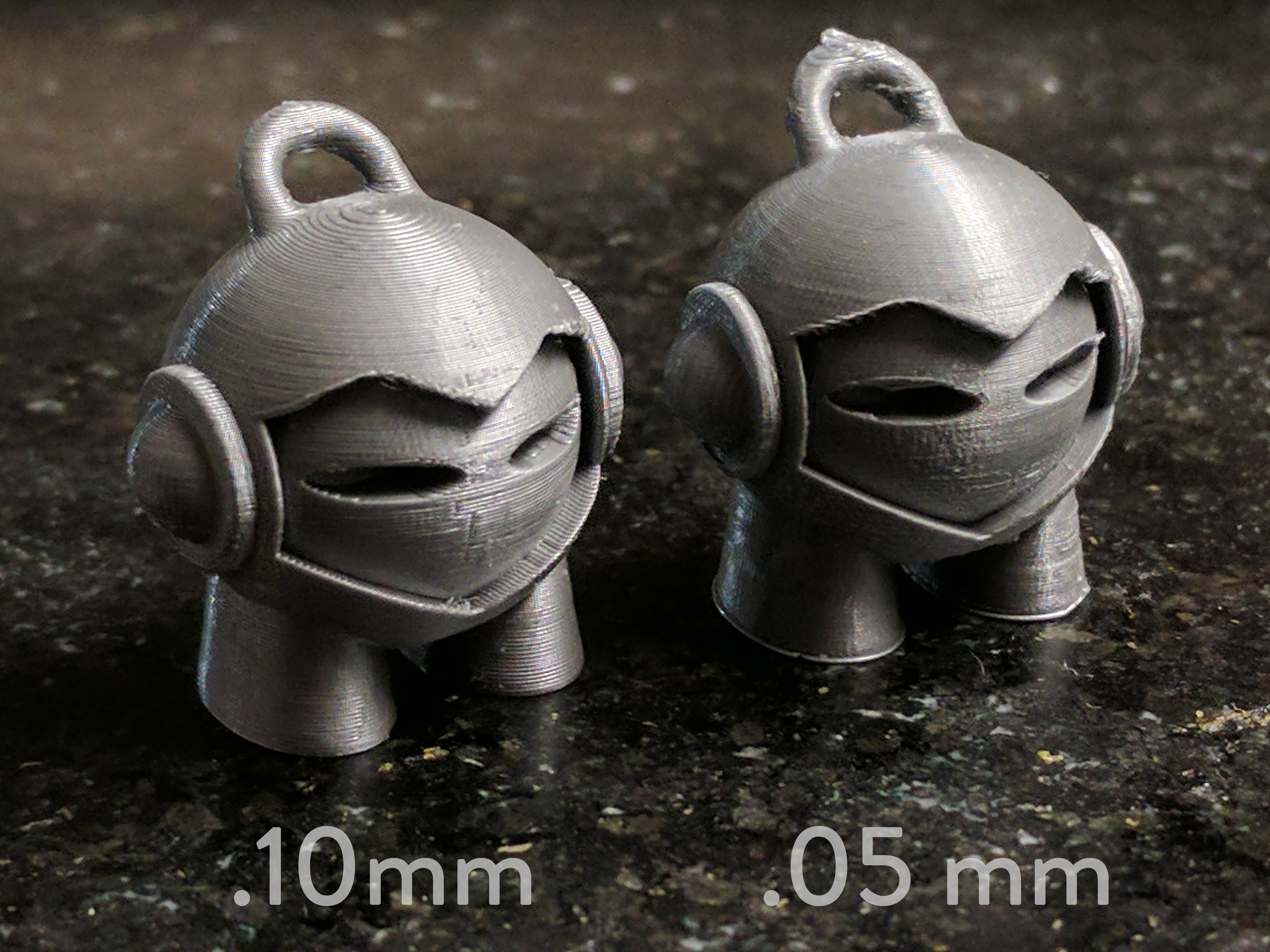 Thanks! Yes, PLA. Here’s a .05mm version (on the right) ran through Simplify3d. Still a couple things to tweak.