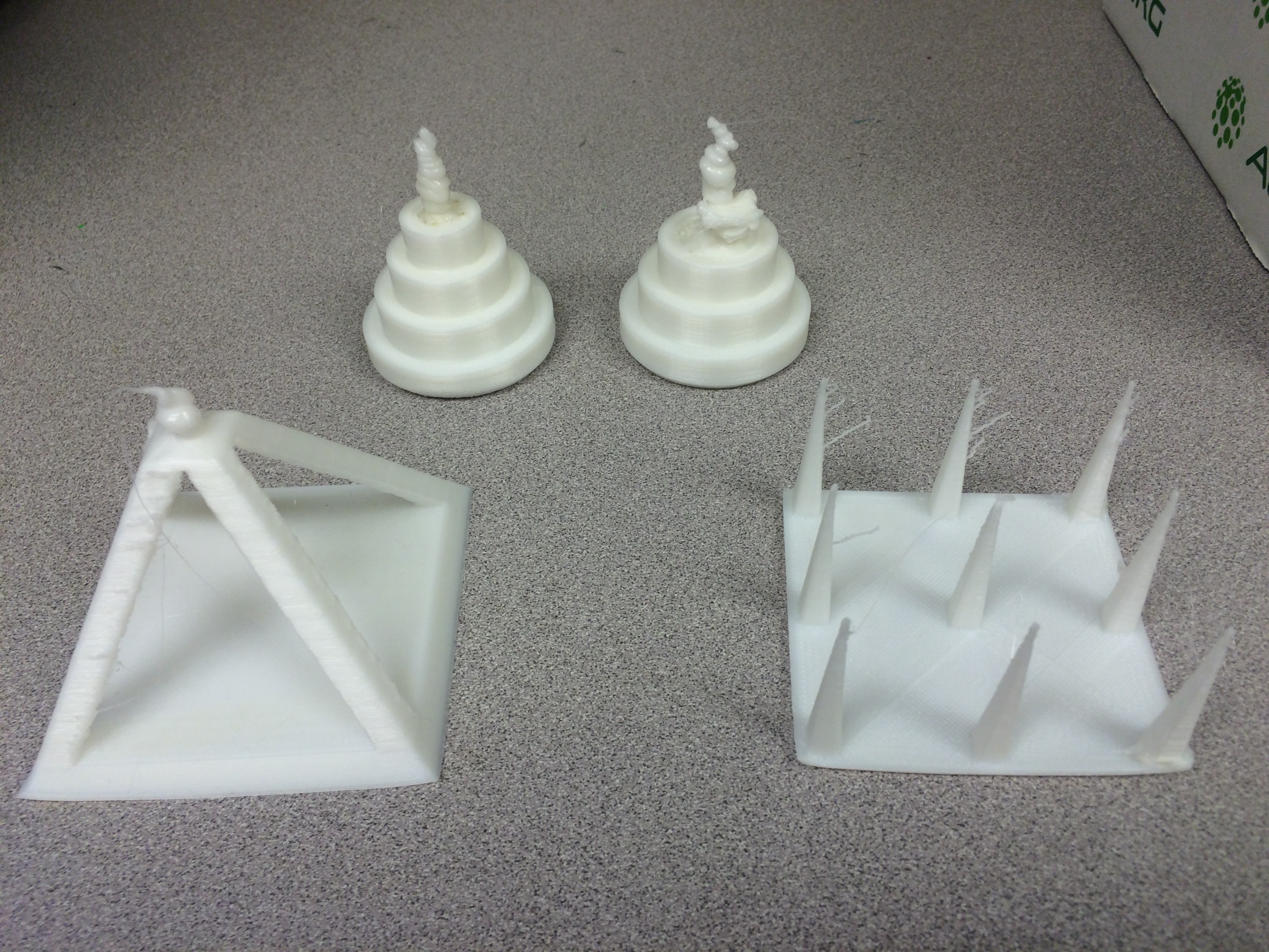 Thanks for the help. I can only use Makerware slicer for this printer, unless slic3r can save files as a .x3g. I do have slic3r, but have not messed with it much, as I manly use cura, Makerware, and Autodesk Print Studio. Also, would placing another item to print on the bed at the same time, help with the retraction test? (The one with the very skinny, tall cones.)