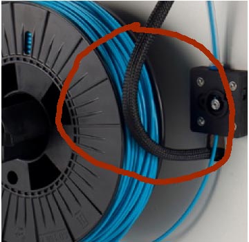 away. My guess is the wire cable is stuck behind the filament spool and is causing drag on the spool and/or the filament path where it should not be. See the picture.