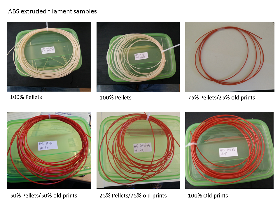 - Mixing shredded old prints with new pellets to produce new filament can give very good results.