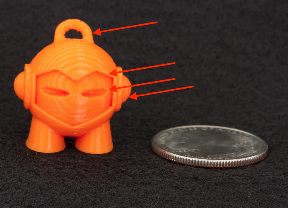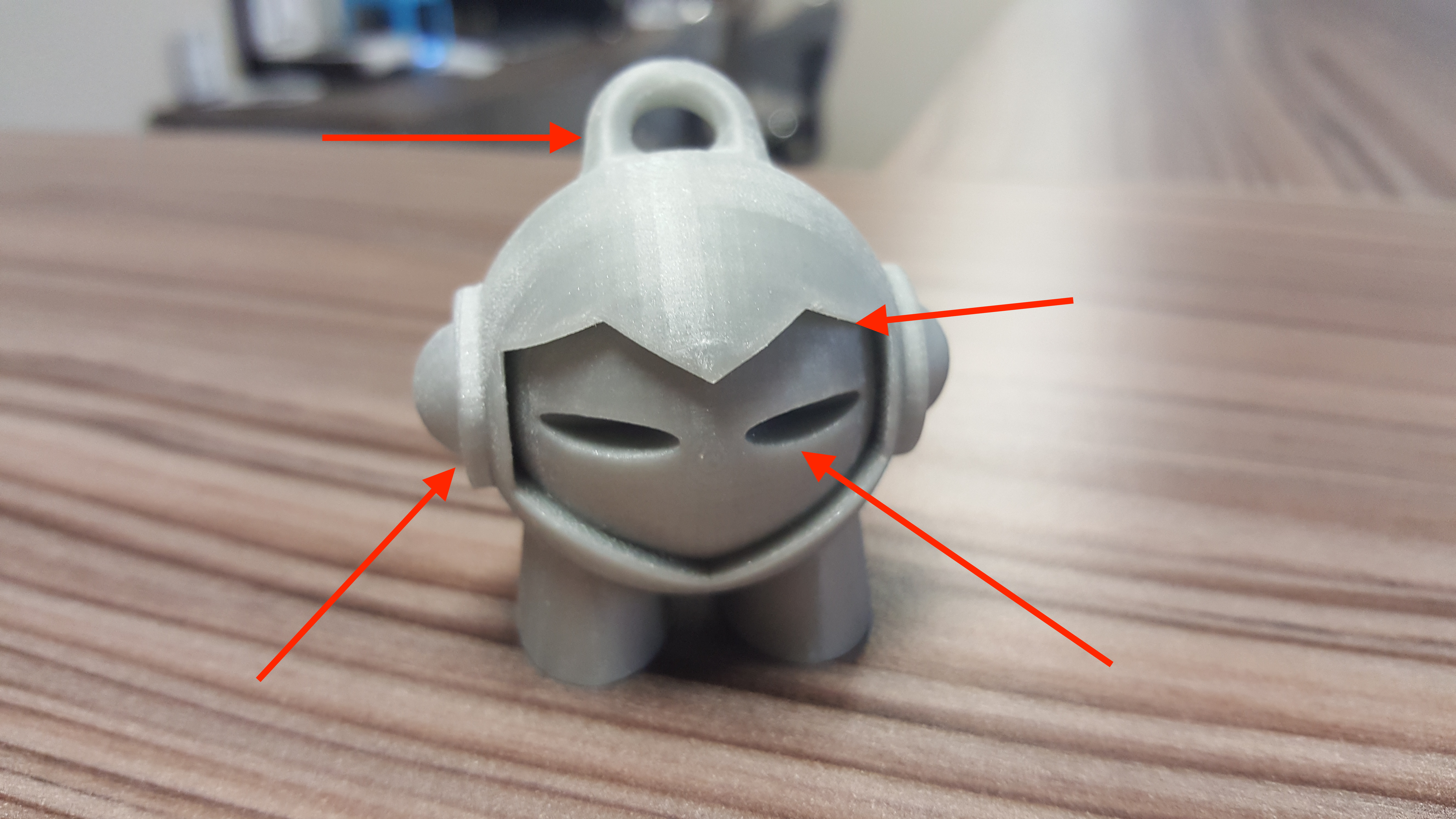 Does it mean that you can’t achieve 5-stars with an FDM printer? No, of course. We know that SLA 3D printers are capable of more precise prints then FDM machines. We look at the layer height, material and colour listed on the order page and we know what to expect from a Marvin printed using those specifications. When printing you should pay extra attention to the following parts of the Marvin model: