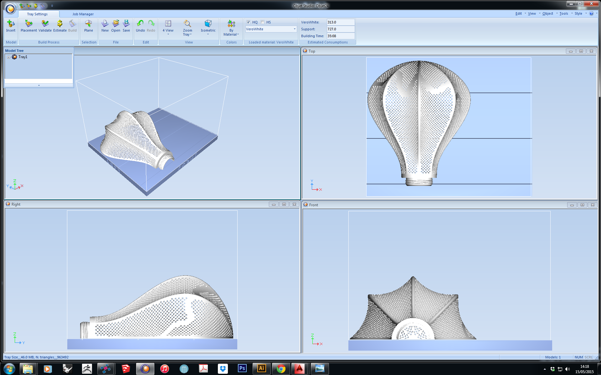 - I assume this is a light cover - one of the great things you can achieve with 3dprinting is Lithoplanes (search Google images!). One of the reasons your STL is so complex and takes a long time to print is the holes… If instead of the holes, you varied the thickness of the walls, so the outside would be smooth, and when the light is switched on, the Thames reveals itself. This effect is definitely something for 3d printing and it will simplify your print and make it stronger (so it can be thinner) and quicker to print.