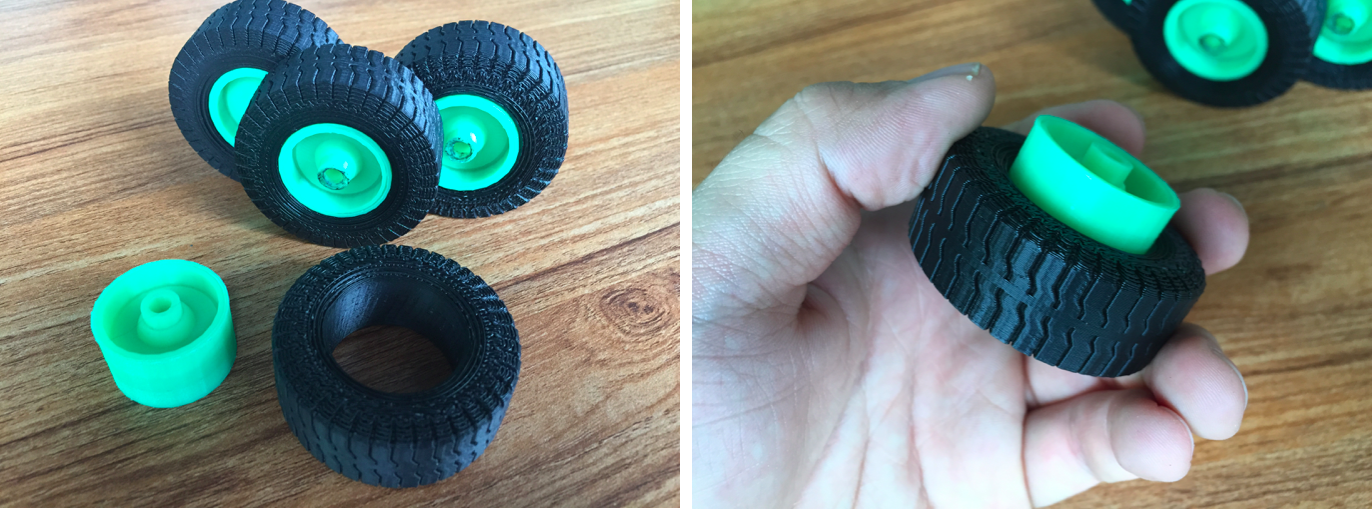 Insert the wheel hub into the tire. 6 wheels are all the same.