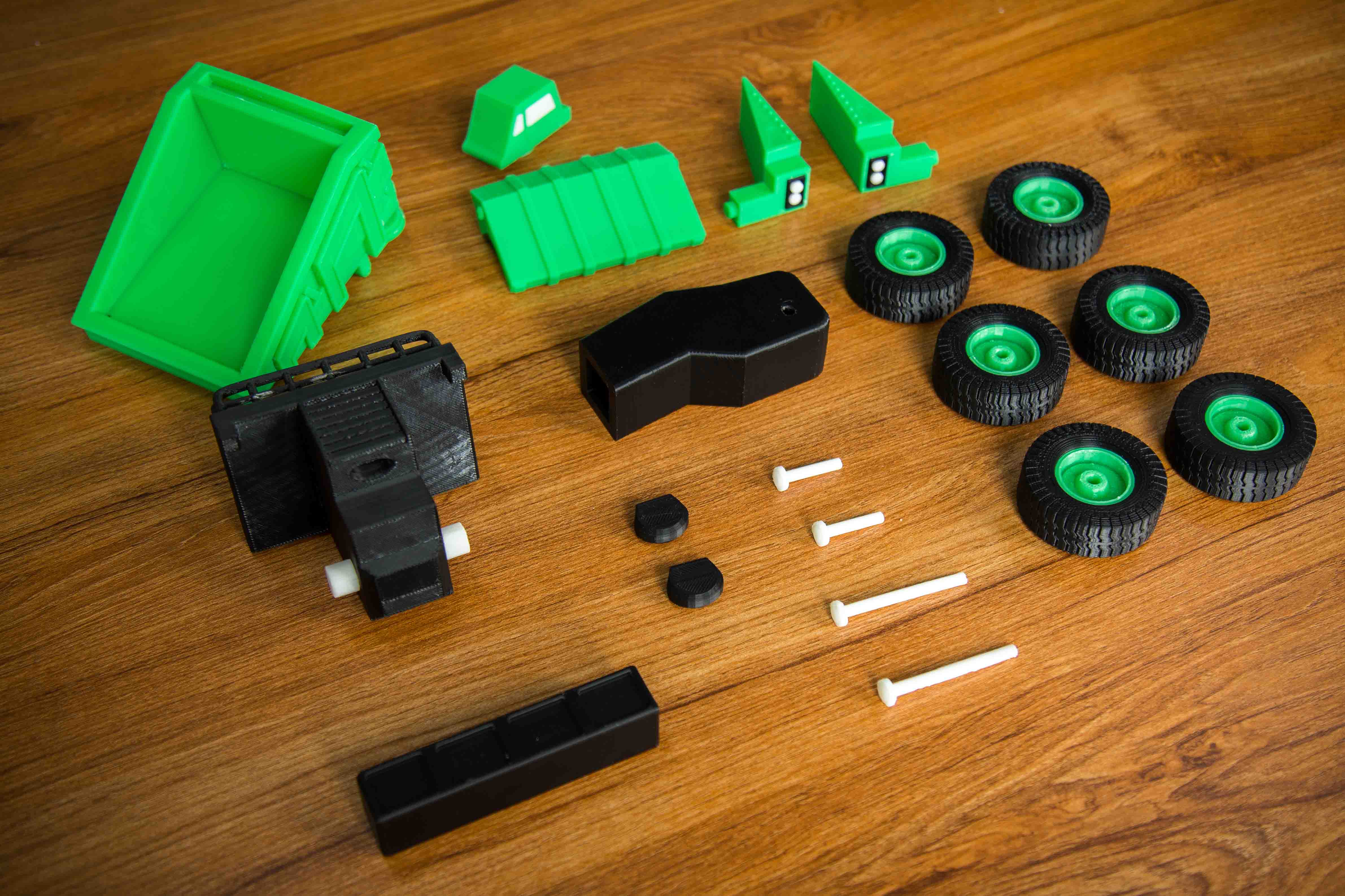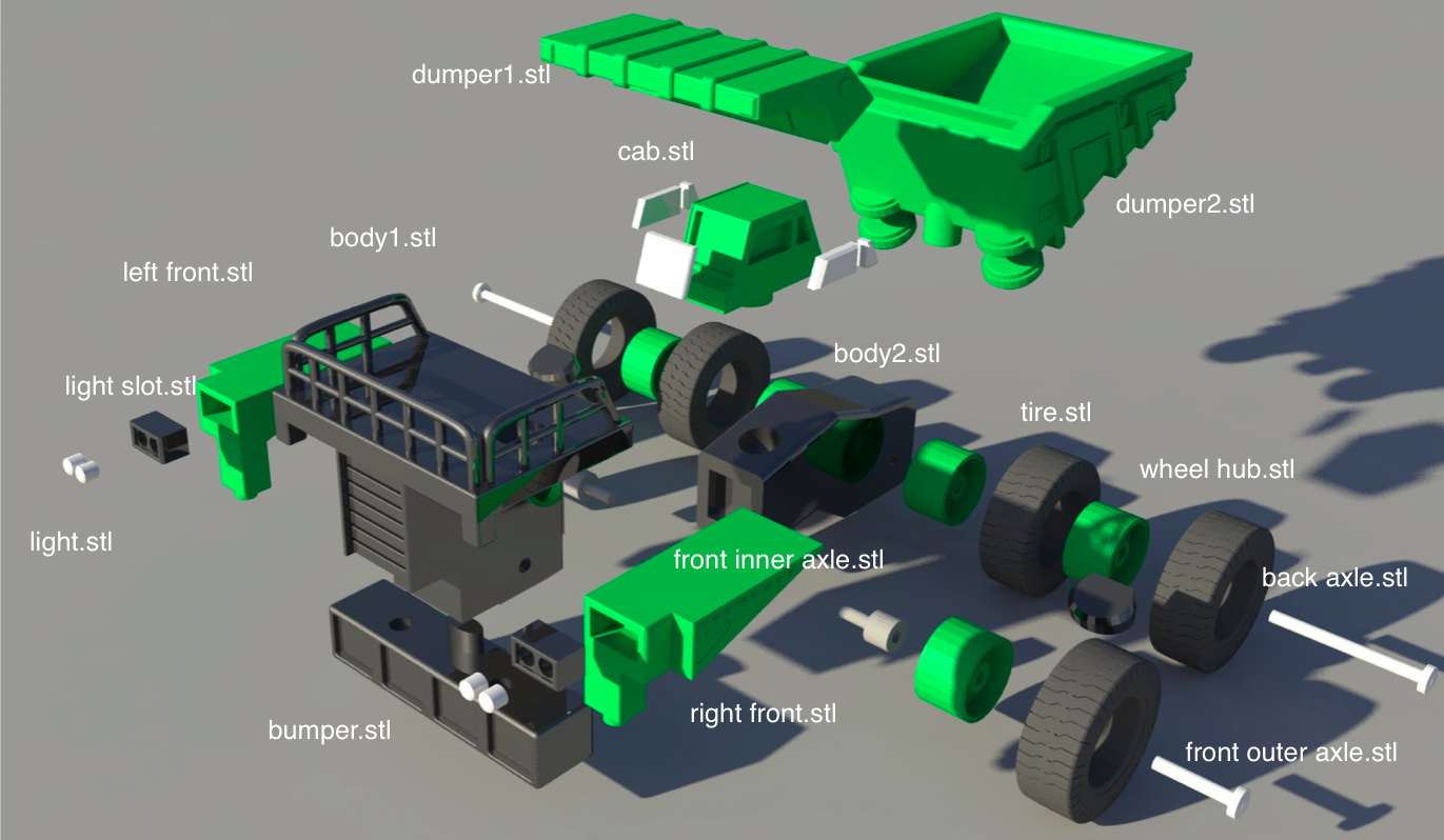 A truck toy set. 3D printed and assembled.