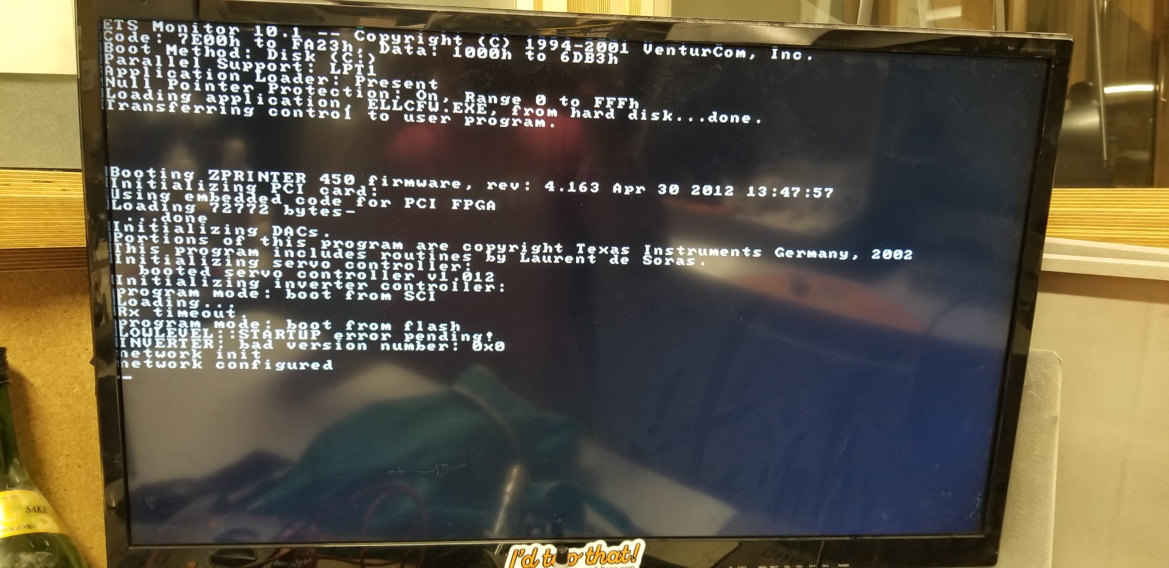 Next on the reboot I got an error message on my printer LCD screen “Inverter Update: Erasing Sector 0” and the screen when blank afterwards.
