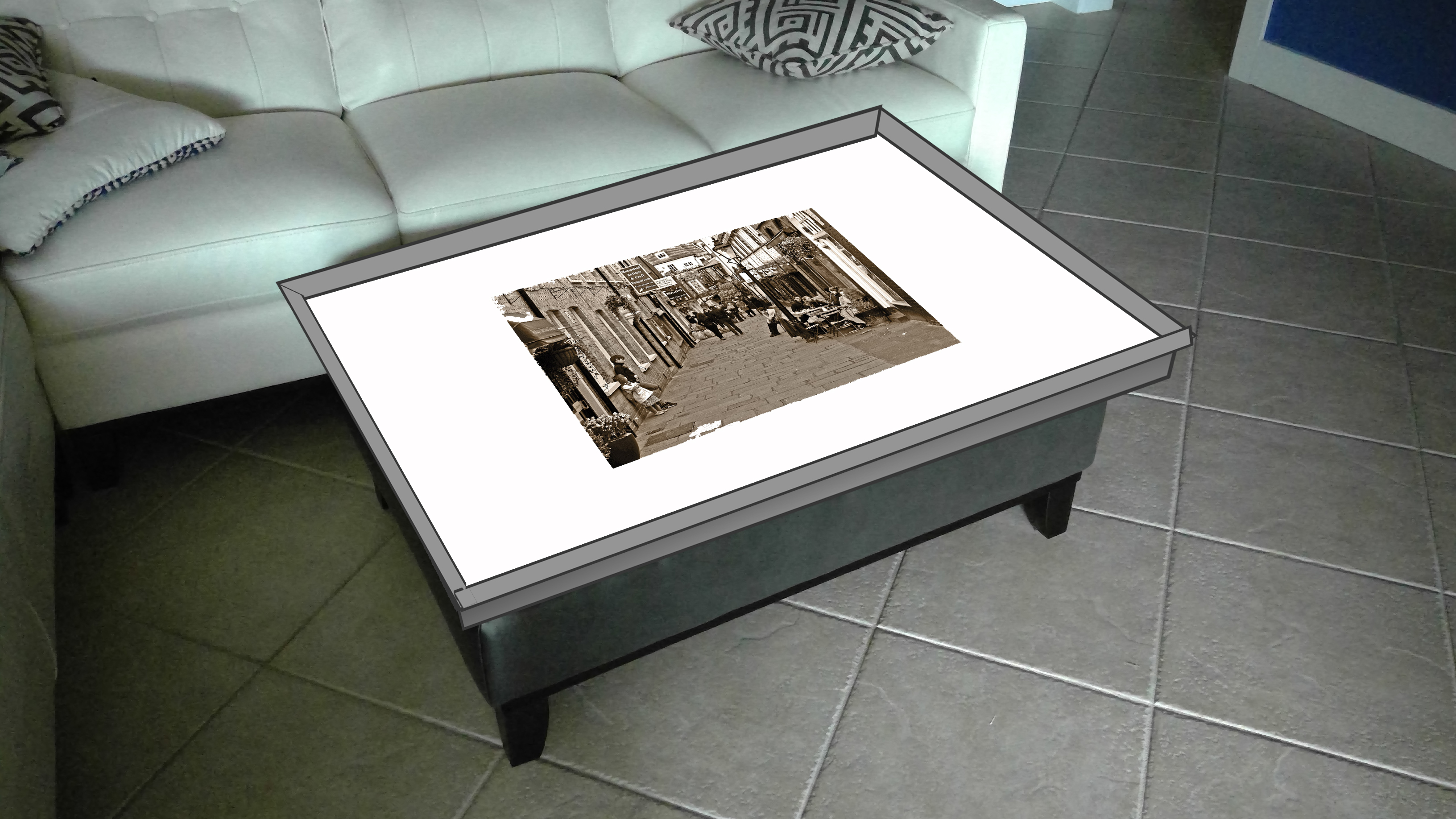 We have an L shaped sectional couch with a good sized ottoman. It is not practical to have a table and the ottoman at the same time. I’d like to 3-d print a “table top” that is also a picture frame. The idea is that the table top can hang on the wall when not in use. I’m attaching a couple ROUGH sketches of the idea.