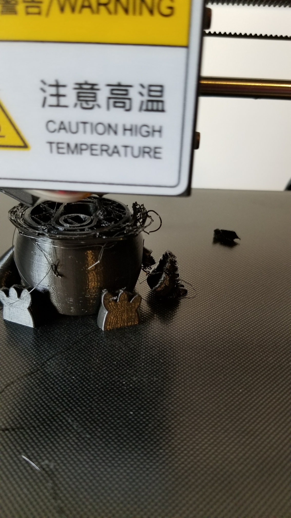 I am using the black PLA filament that came with the machine and am having an issue. Most of the robot printed ok, but one arm on one side is almost completely missing and then as it got toward the top I am getting a lot of stringing. I have attached a few pictures as examples. What could be going wrong?
