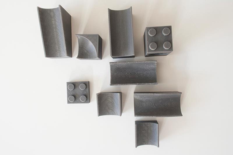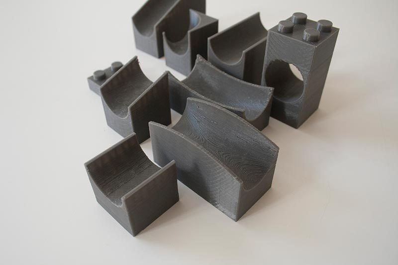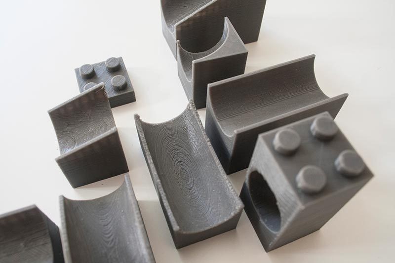 A small set of LEGO Duplo 9 pieces with which to build tracks for marbles. It is a great way to entertain your children! The set was printed with PLA Robotic Grey of FormFutura.