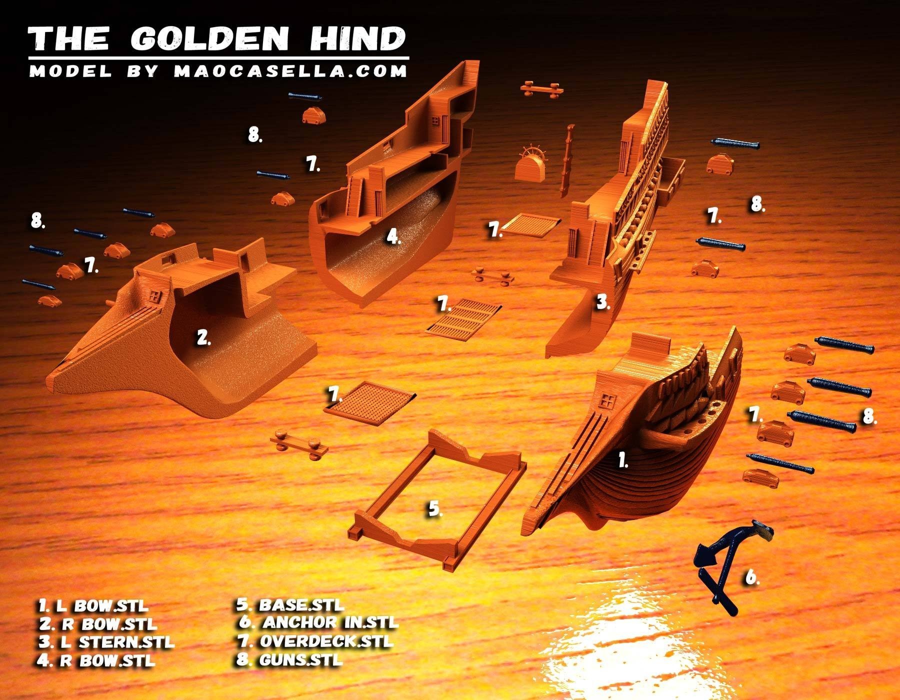 You can download the 3D models & instructions here: 3D file golden hind・3D printing template to download・Cults