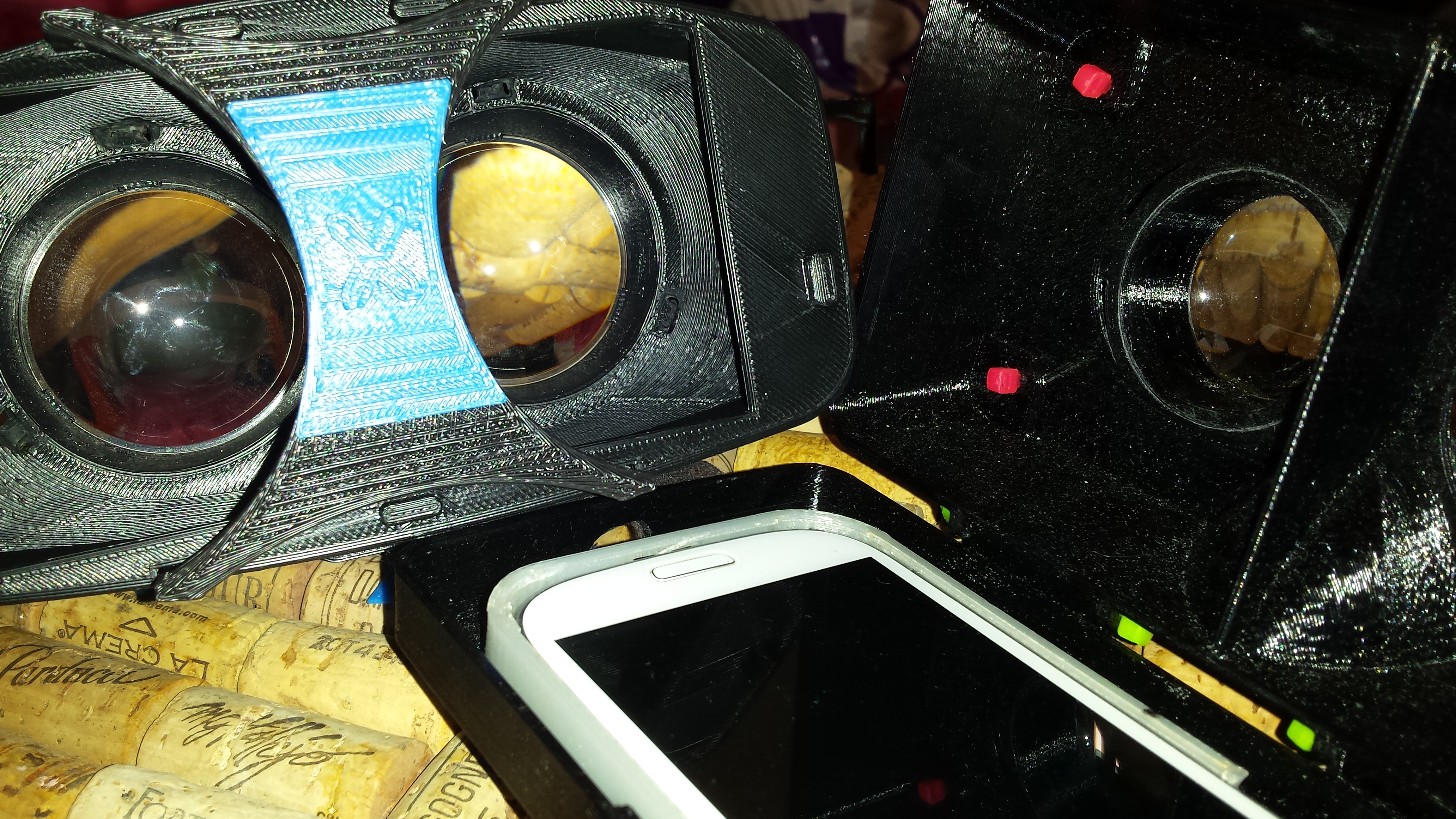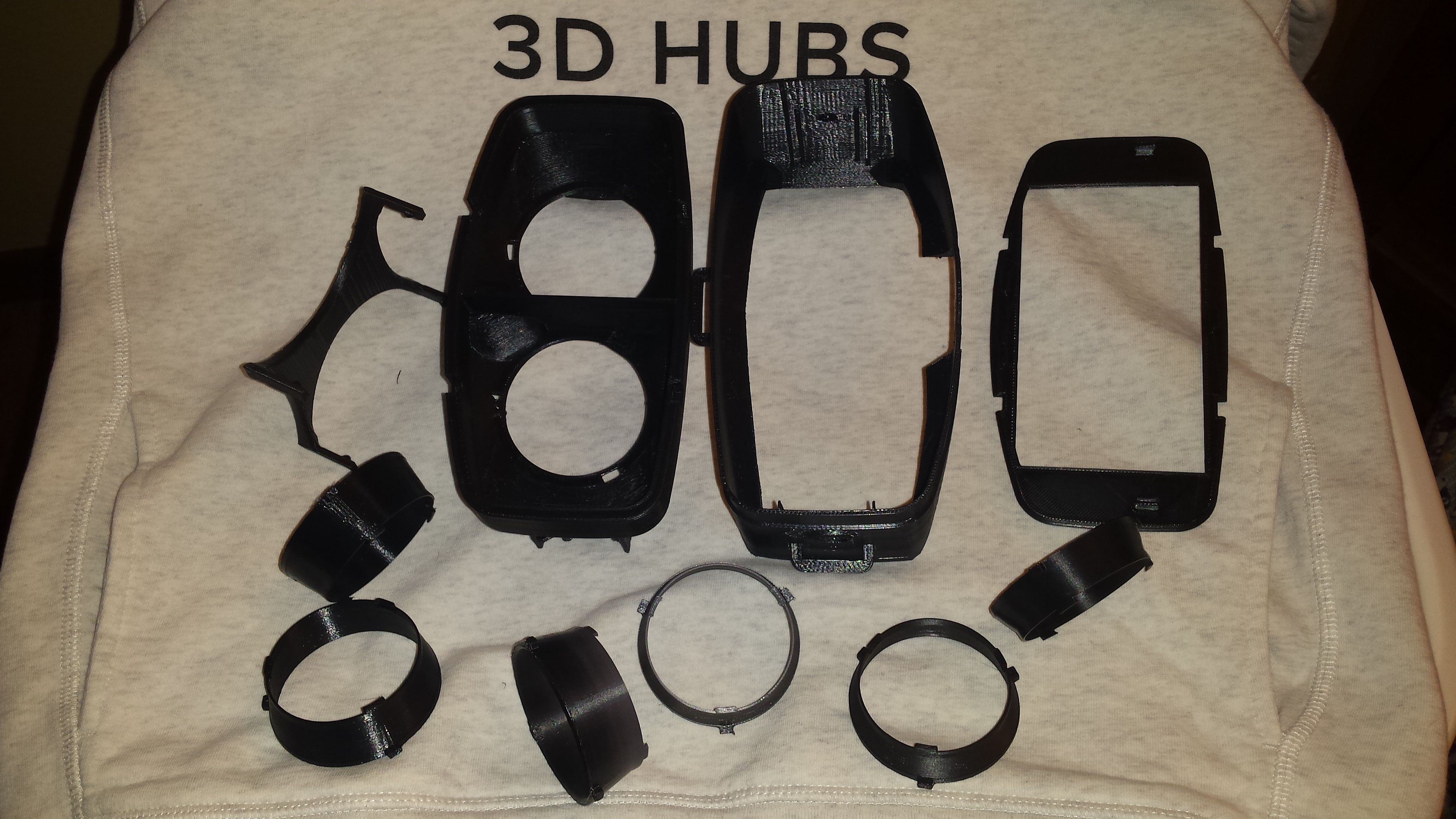 A customer had a specific phone and already bought the large lenses for this model of Mobile VR HMD. Various types of recycled ABS were used to print this custom bit of kit and I designed some simple accents to jazz it up and fix some small design/print flaws. One intial “fitting” was