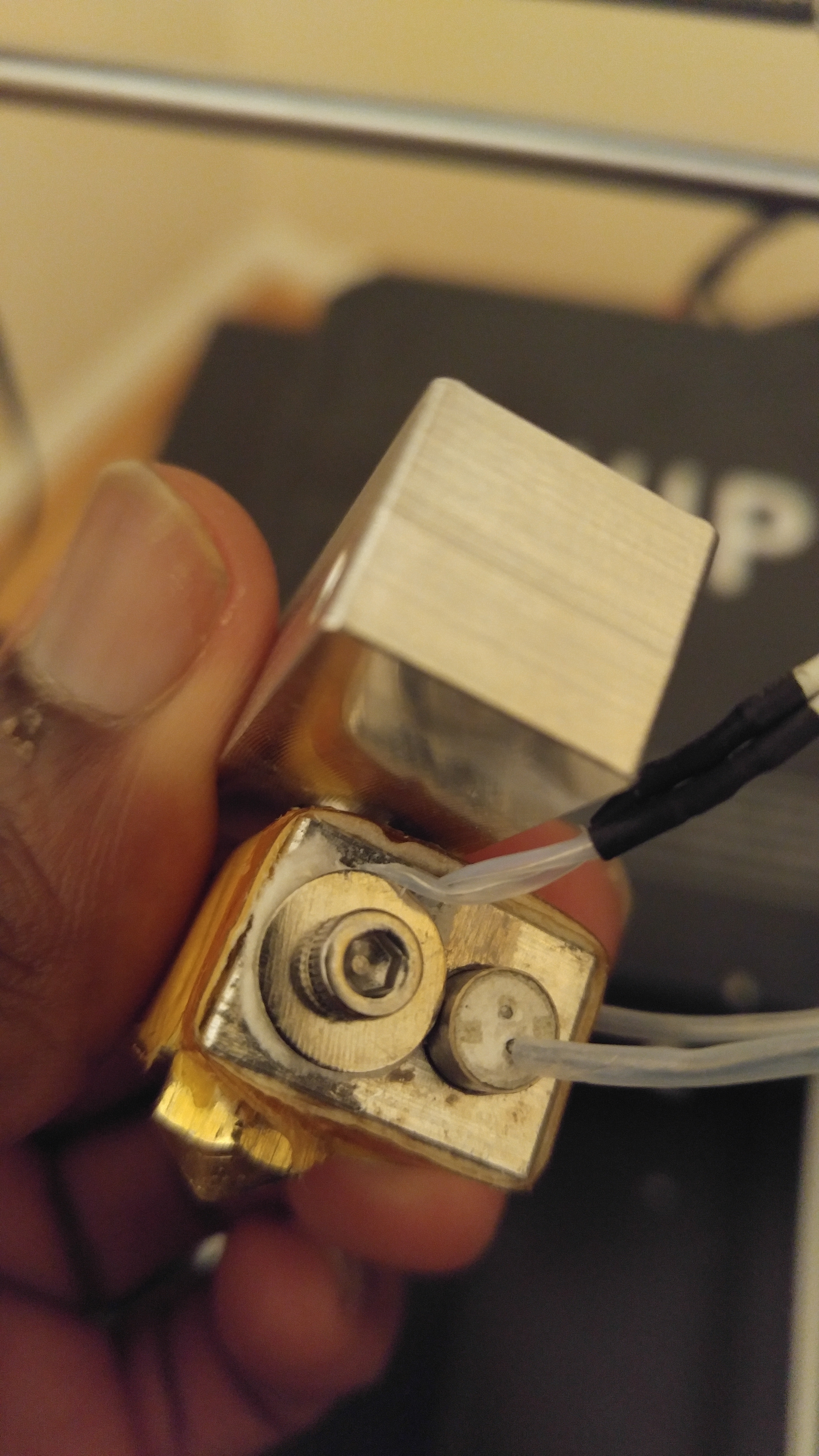 I just got the Maer select and I have used a 3d printer before but have never had my own. On my very first print i had a jam so I unassembled the extruder then a wire disconnected and the nozzle won’t come off. The tape thing also is peeling off… I need help to fix this. The pictures explain it better.