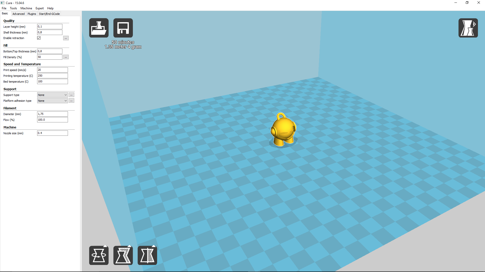 Also, too high a resolution can cause poor overhangs, such as the eyebrows. Suggest .2mm layer size.