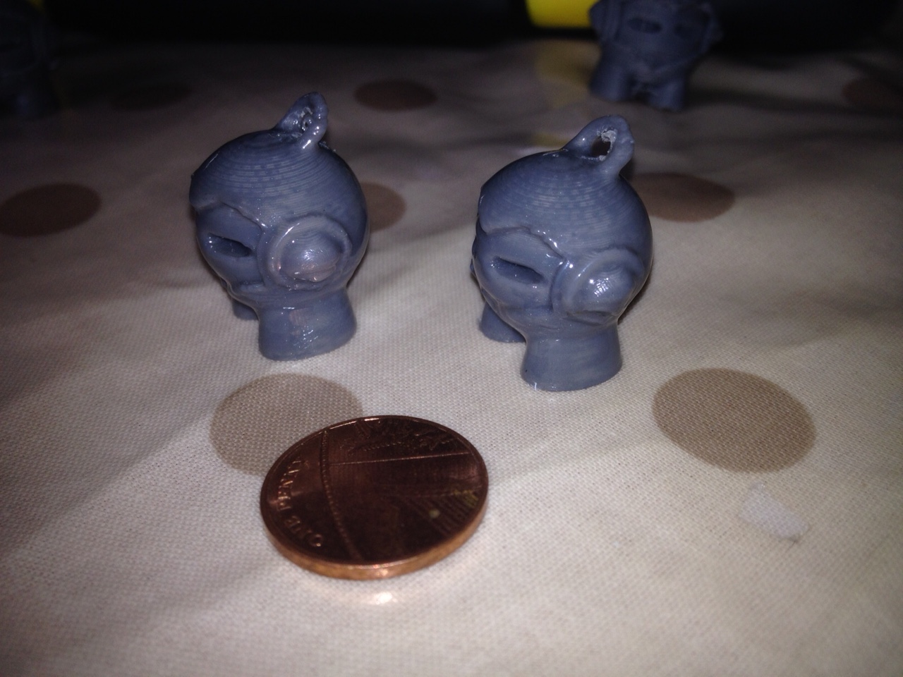 There is the option to print with doors open and a small desk fan blowing in there (the same as I do for PLA printing on this printer, having lowered temps with the software mod). I could also try a lower extrusion temp too. Also the print head has a selector for directing more air onto the print as it comes out which I presume will cool it quicker too, probably a good idea for Marv as he is so small.