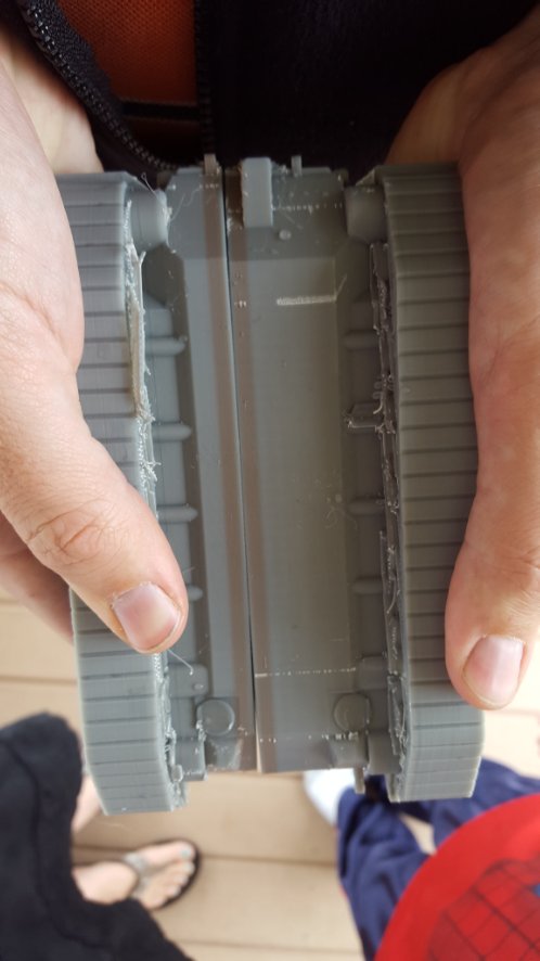 I’ve been printing some tanks that turn out excellent, except for the amount of support that is generated in the suspension. I thought I would be clever, and split the tank in half length wise, and print the tank so the tracks are up, then glue the halves together, thereby completely eliminating the support removal in the suspension. This has worked great and the models look really good. However, they all come out with a slight warp, as seen when I put the two halves of the tank together (see photo)