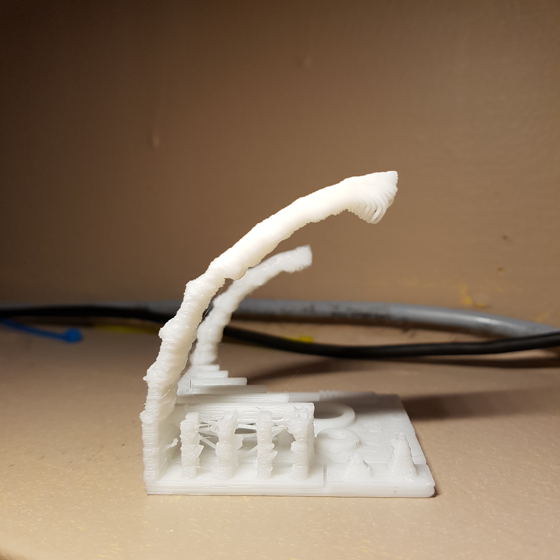 I had already done the Z brace mod and was printing fine before these two upgrades. See photos of a printer test that my printer absolutely destroyed (Printed using white Monoprice PLA) and my settings in Cura.